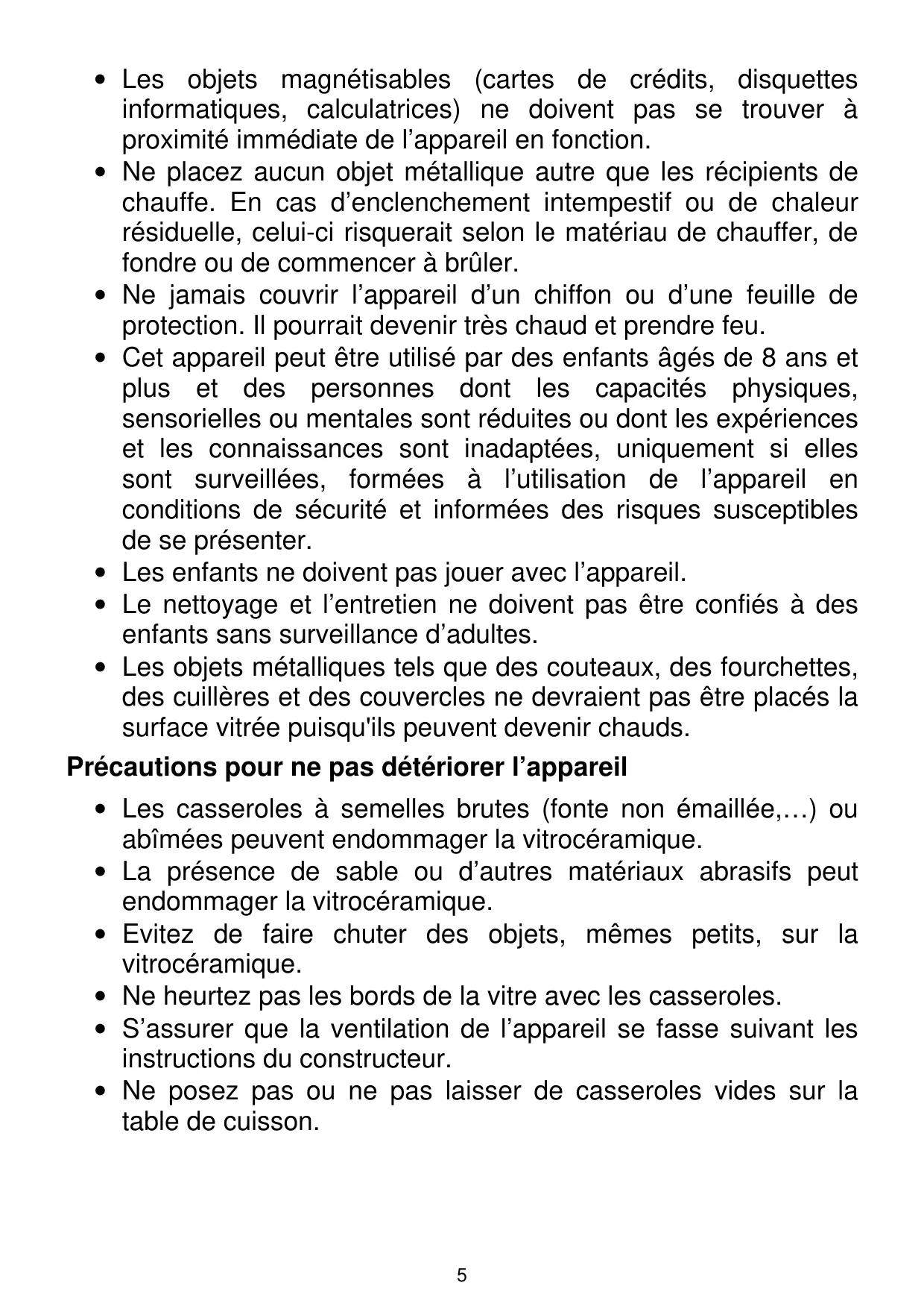 - Ne posez pas ou ne pas laisser de casseroles vides sur la table de cuisson.