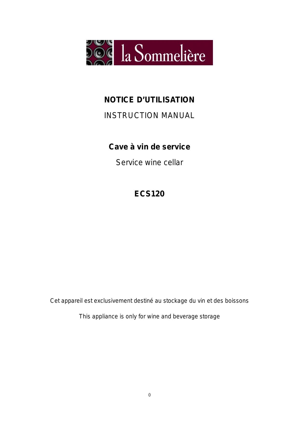 Retrouvez gratuitement la notice de l'appareil ECS 120 LA SOMMELIERE au format PDF.