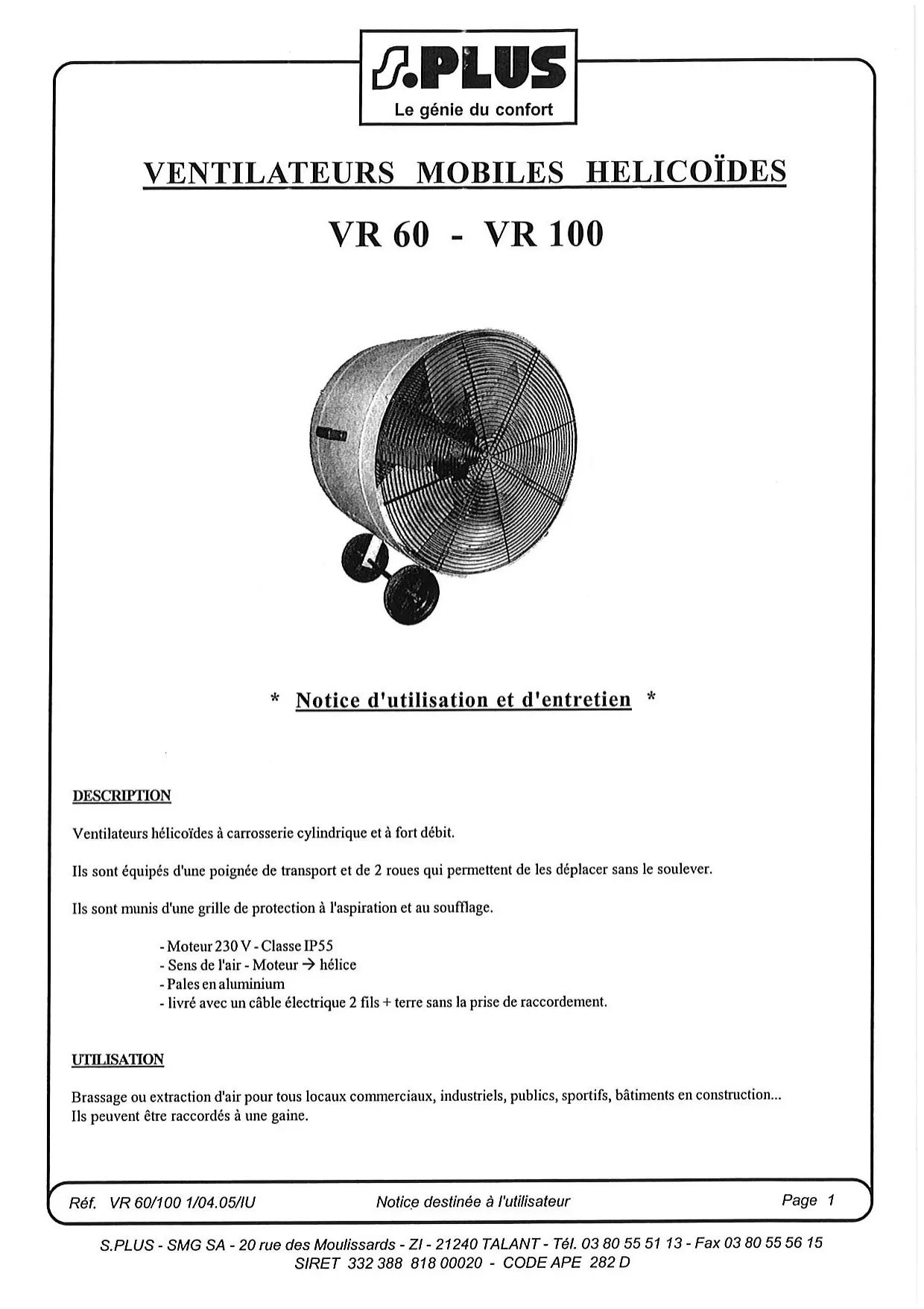 VR 60 - Ventilateur S.PLUS - Notice d'utilisation et mode d'emploi gratuit