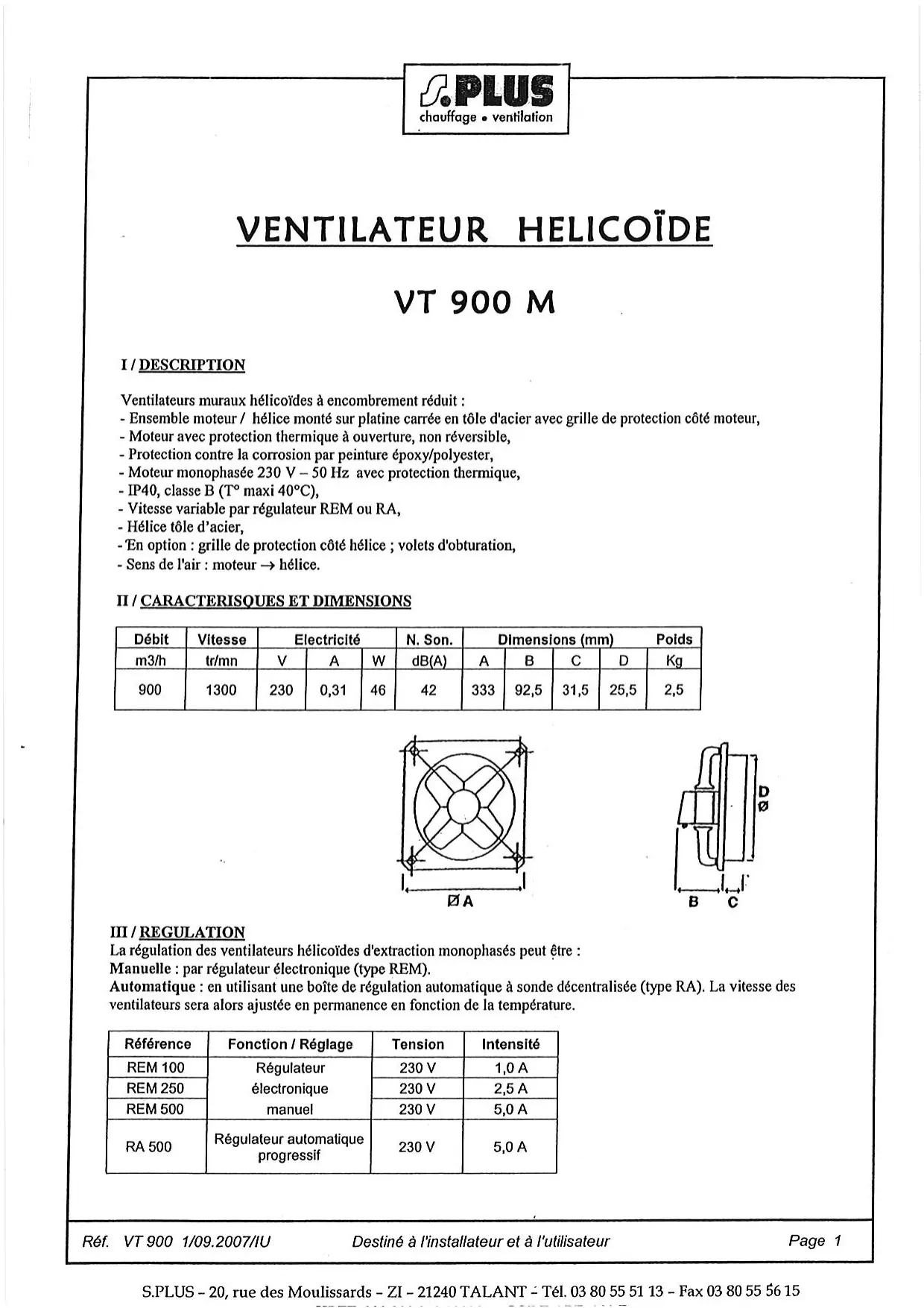 VT 900 M - Ventilateur S.PLUS - Notice d'utilisation et mode d'emploi gratuit