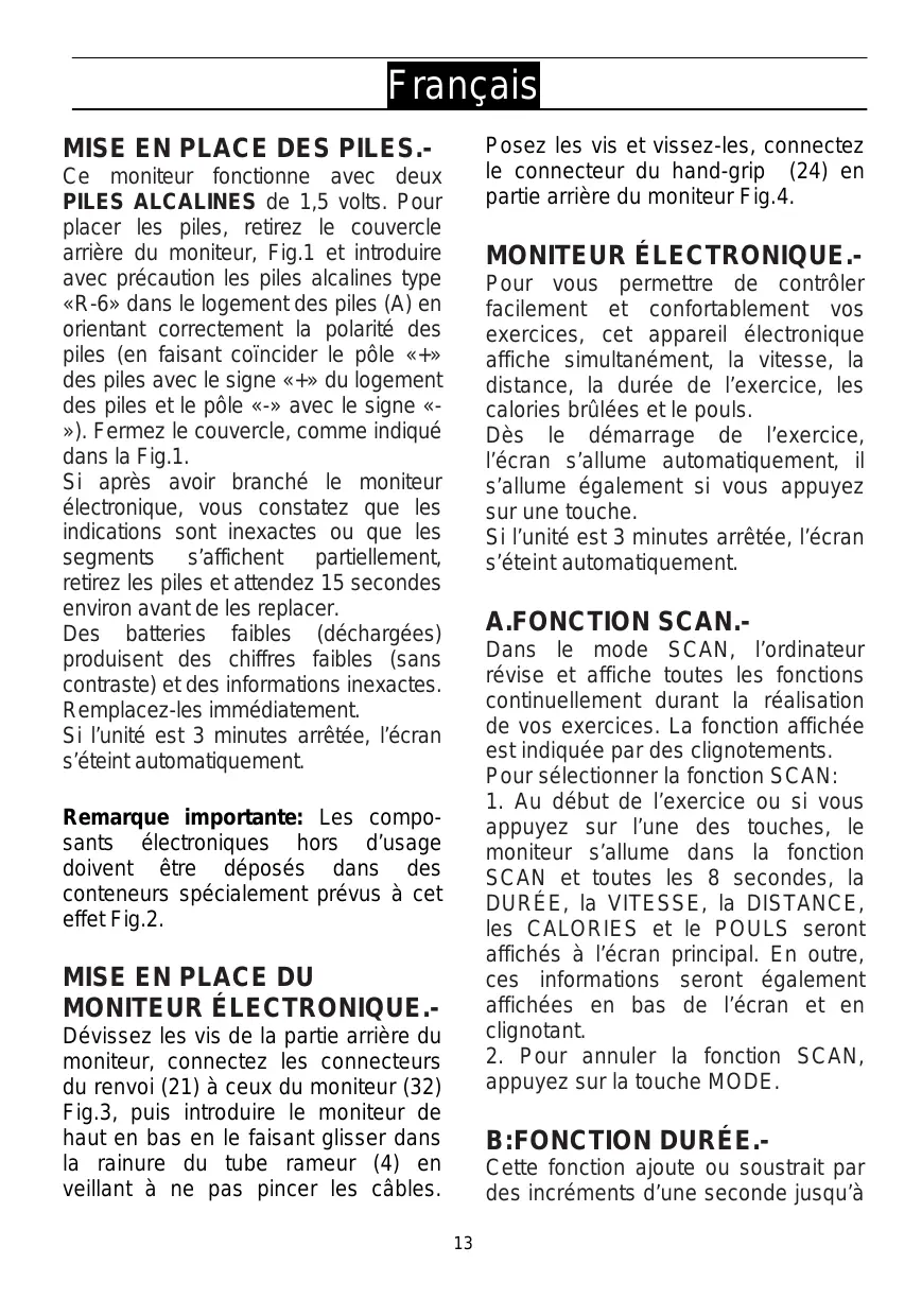 MODE D'EMPLOI H-283 BH FITNESS