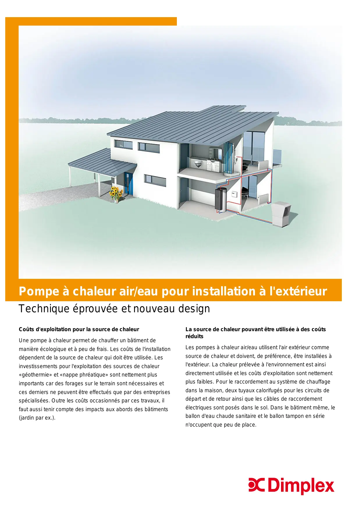 Pompe à chaleur air/eau pour installation à l'extérieur Technique éprouvée et nouveau design Coûts d'exploitation pour la source de chaleur Une pompe à chaleur permet de chauffer un bâtiment de