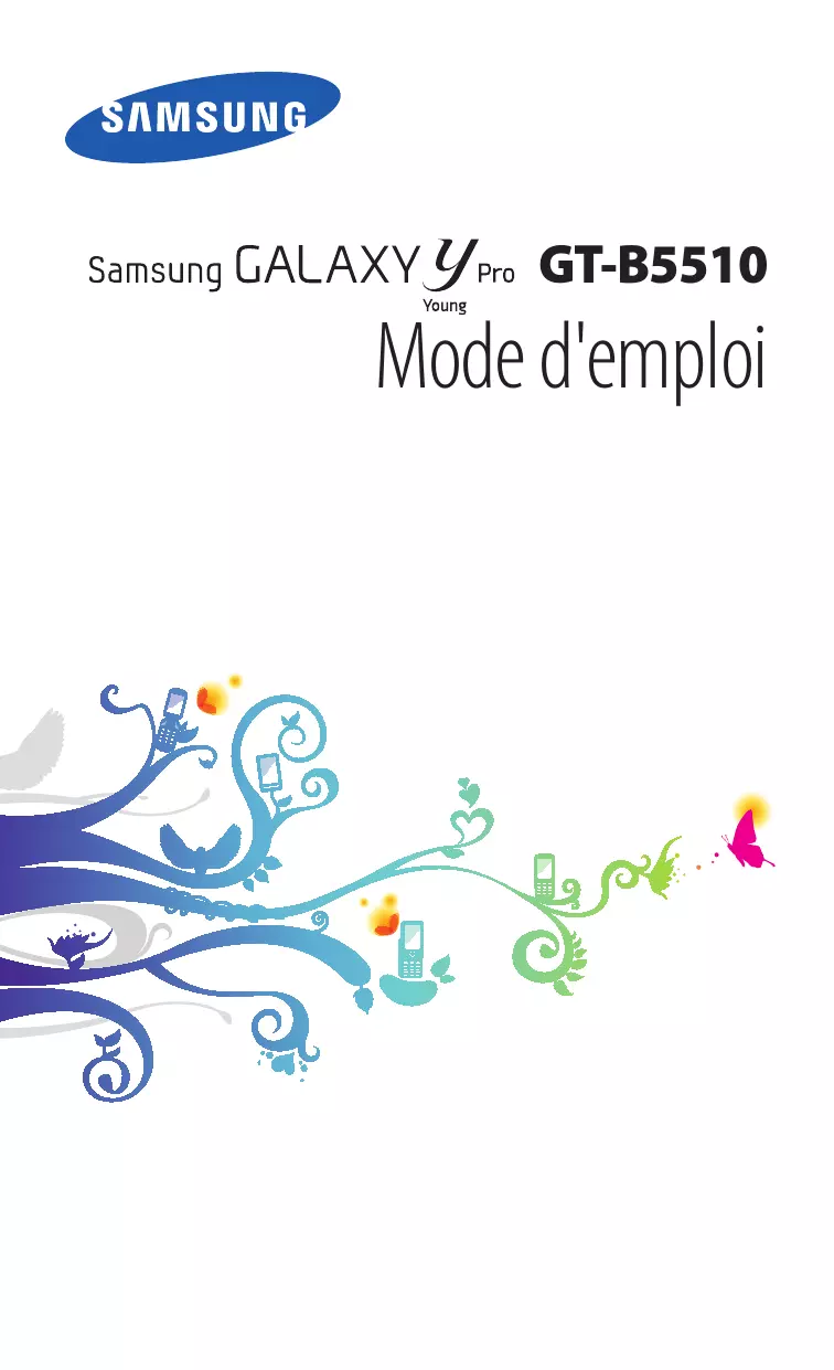 GT-B5510 Mode d'emploi Utilisation de ce mode d’emploi Merci d’avoir fait l’acquisition de cet appareil mobile Samsung. Cet appareil vous permettra de communiquer et d’accéder à des divertissements de haute qualité, basés sur les critères de qualité et la technologie de Samsung. Ce mode d’emploi a été conçu spécialement pour vous permettre de découvrir les fonctions et les caractéristiques de votre appareil. À lire avant toute utilisation Veuillez lire attentivement ce mode d’emploi et toutes les précautions indiquées avant d’utiliser votre appareil, afin de vous assurer d’une utilisation correcte en toute sécurité. ●● Les instructions et descriptions mentionnées dans ce mode d’emploi sont basées sur les paramètres par défaut de votre appareil. ●● Les images et les captures d’écran utilisées dans ce mode d’emploi peuvent différer par rapport à l’aspect réel du produit. ●● Le contenu de ce mode d’emploi peut différer par rapport au produit ou au programme fourni par les opérateurs ou les exploitants et faire l’objet de changements sans préavis. Pour obtenir la version la plus récente de ce mode d’emploi, connectez-vous à www.samsung.com. ●● Les fonctions disponibles et les services supplémentaires peuvent varier en fonction de l’appareil, de la version logicielle ou de l’opérateur. ●● La mise en forme et la distribution de ce mode d’emploi sont basées sur les systèmes d’exploitation Google Android et peuvent varier en fonction du système d’exploitation de l’utilisateur. ●● Les applications et leurs fonctions peuvent varier en fonction des différents pays, régions ou des caractéristiques du matériel. Samsung n’est pas responsable des problèmes de performances relatifs aux applications fournies par des tiers.