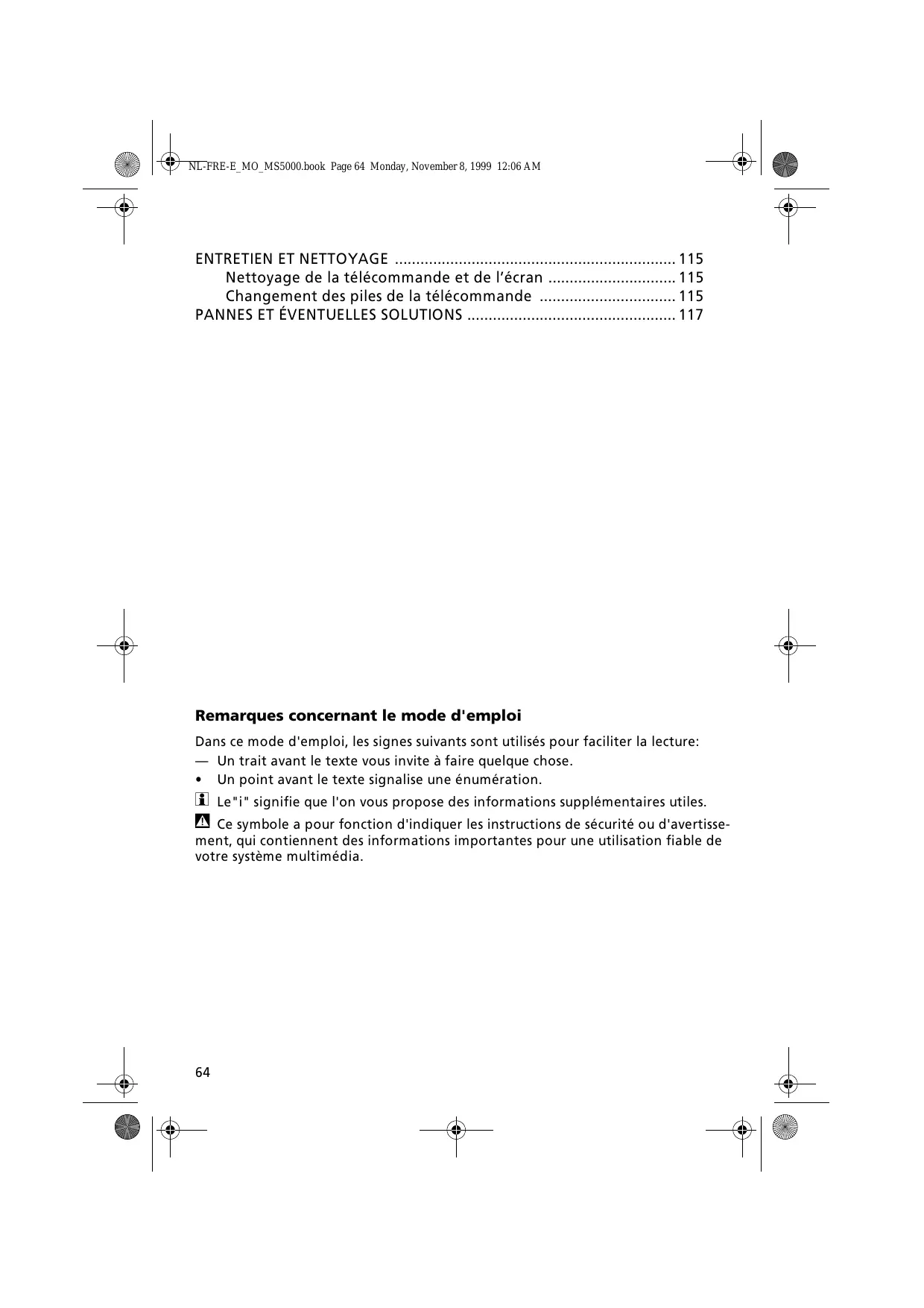 Remarques concernant le mode d'emploi