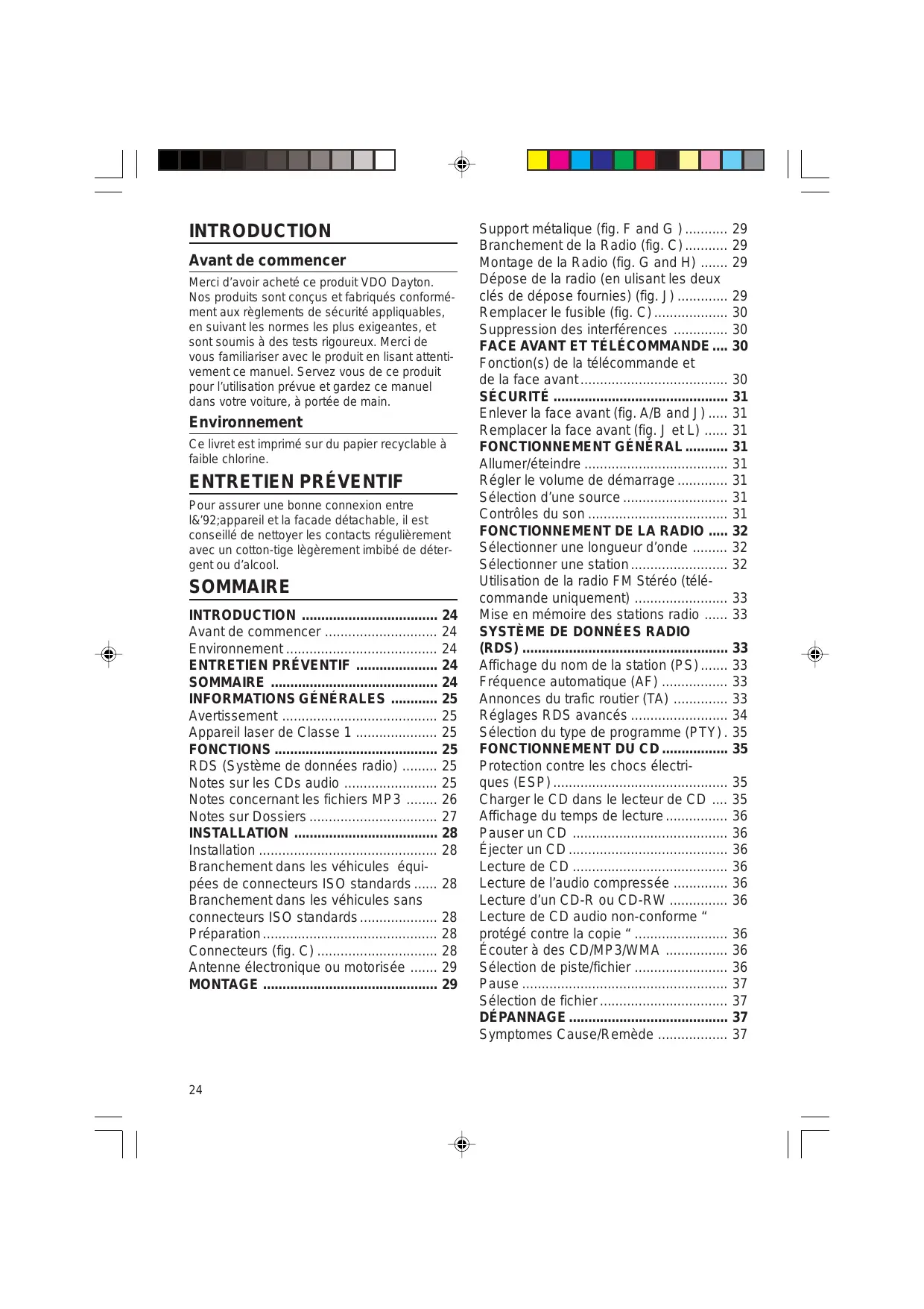 Merci d'avoir acheté ce produit VDO Dayton. Nos produits sont conçus et fabriqués conformément aux règlements de sécurité applicables, en suivant les normes les plus exigeantes, et sont soumis à des tests rigoureux. Merci de vous familiariser avec le produit en lisant attentivement ce manuel. Servez-vous de ce produit pour l'utilisation prévue et gardez ce manuel dans votre voiture, à portée de main.