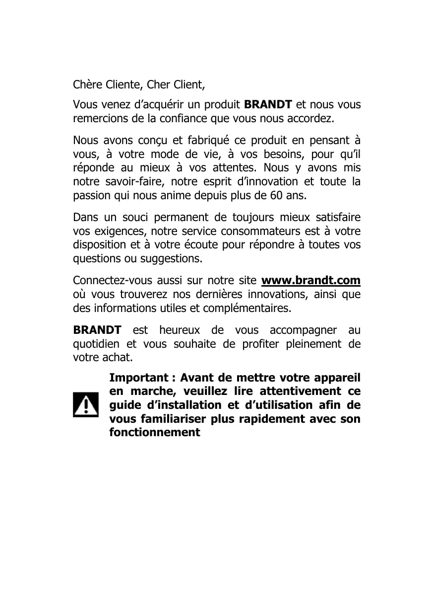 FOIRE AUX QUESTIONS - BFC644ZNX BRANDT