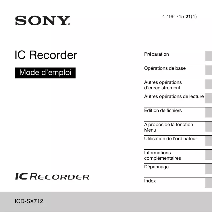 ICDSX712DB - Enregistreur vocal SONY - Notice d'utilisation et mode d'emploi gratuit