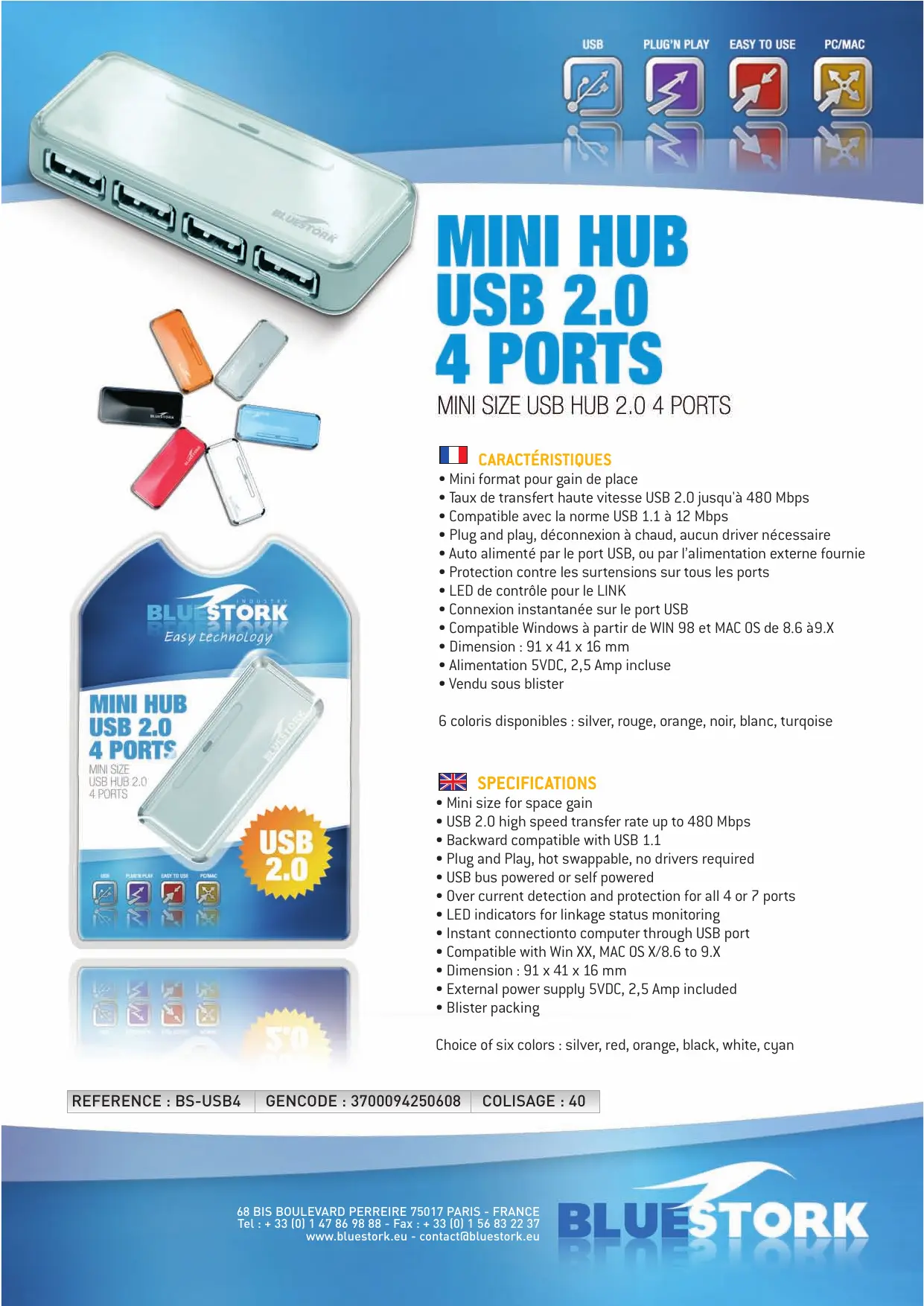 Retrouvez gratuitement la notice de l'appareil BS-USB4 BLUESTORK au format PDF.