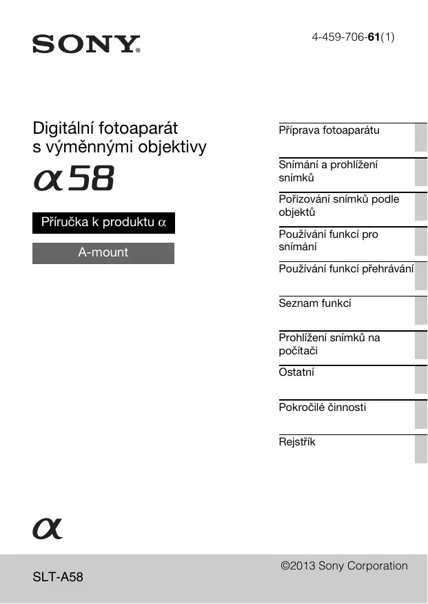 Retrouvez gratuitement la notice de l'appareil A58 SONY au format PDF.