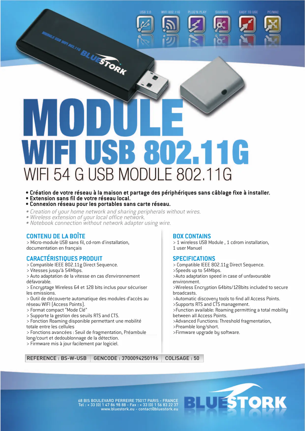 BS-WG-USB - Clé USB Wi-Fi BLUESTORK - Notice d'utilisation et mode d'emploi gratuit