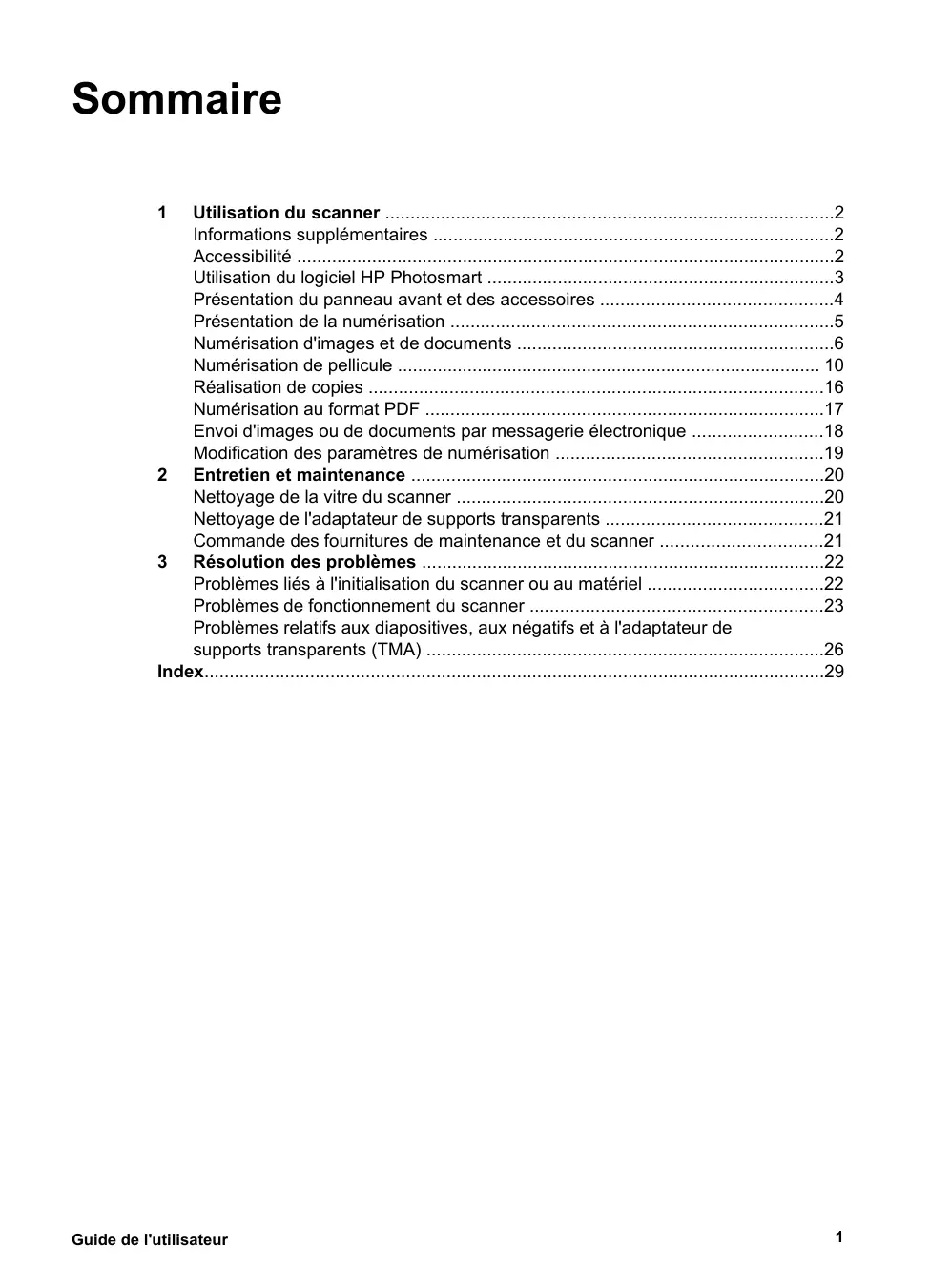 HP Scanjet série G4000 Guide de l'utilisateur Sommaire