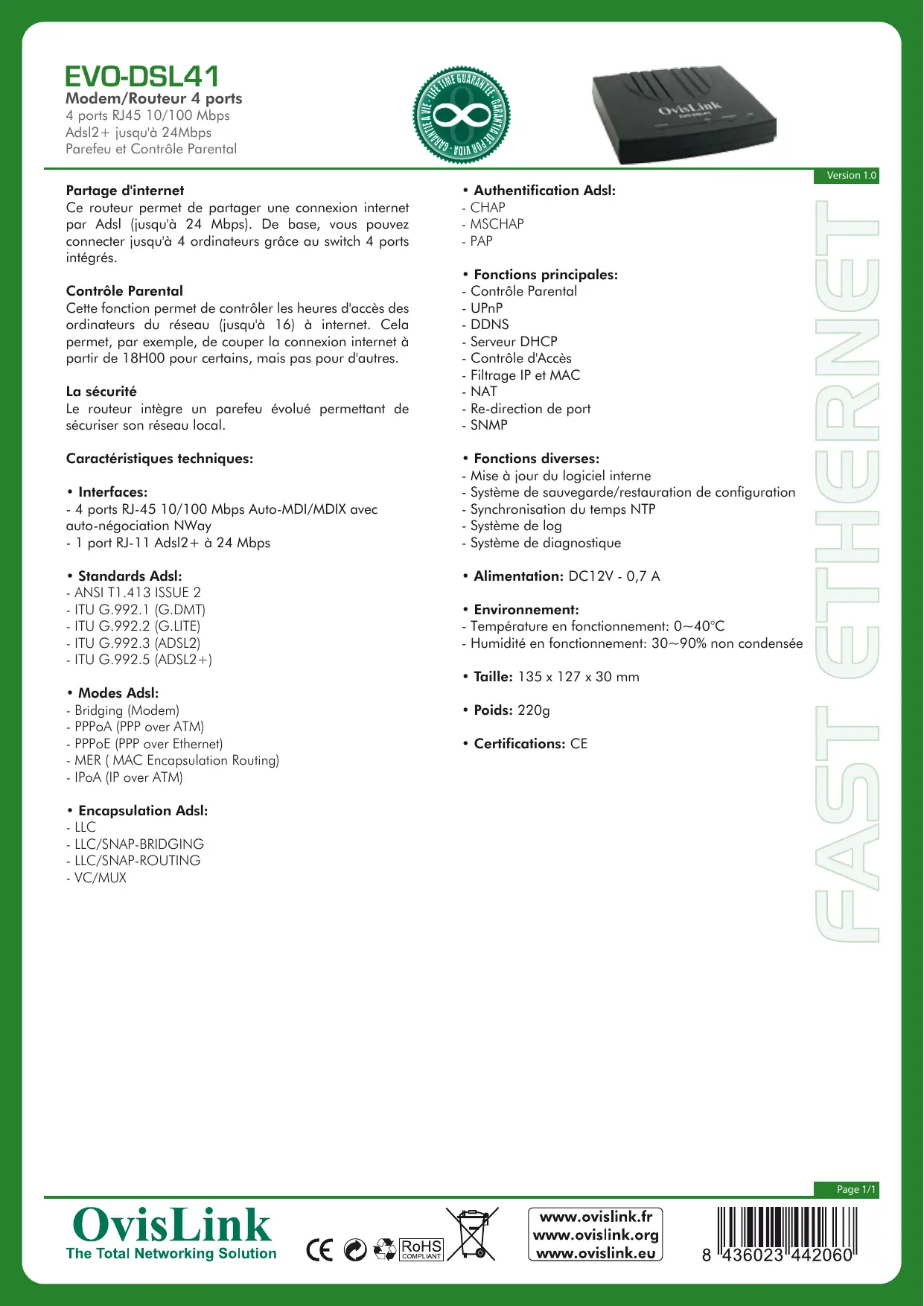 Retrouvez gratuitement la notice de l'appareil EVO-DSL41 OVISLINK au format PDF.
