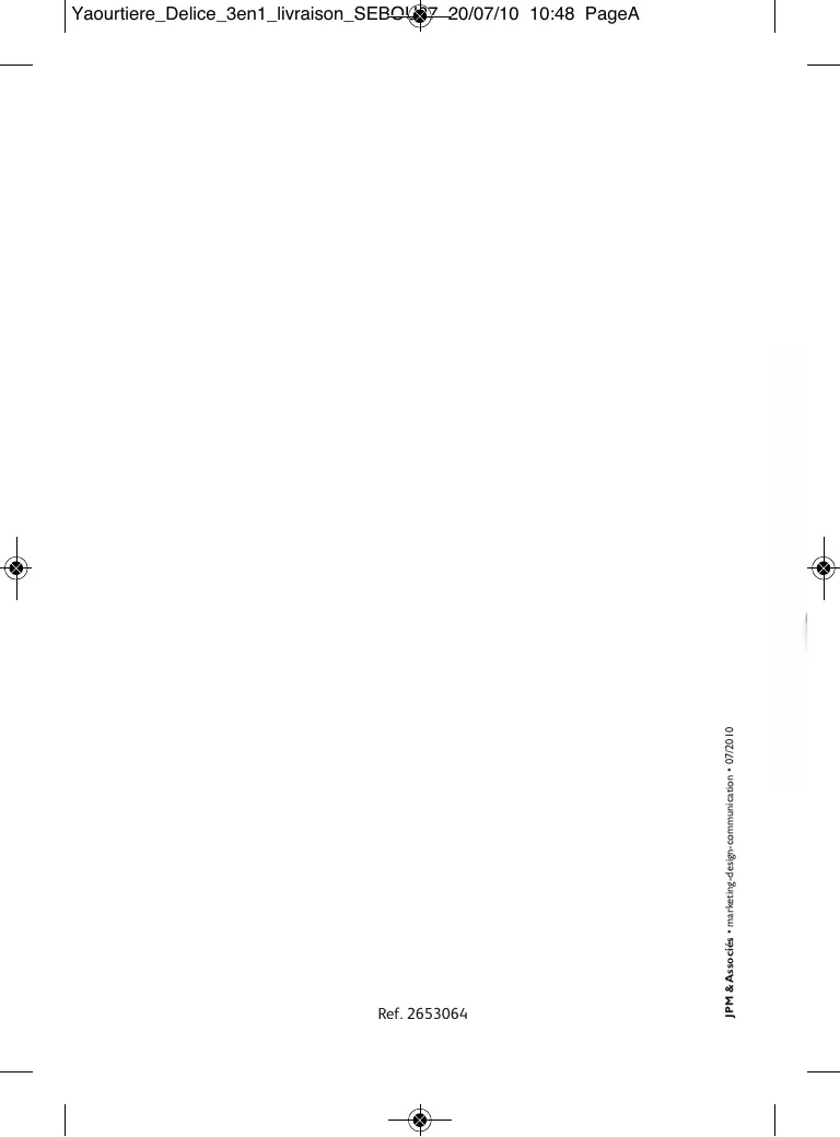|Yaourtiere_Delice_8en1_livraison_SEBOK$7 20/07/10 1 Consignes de sécurité Lisez attentivement le mode d'emploi avant la première utilisation de votre et conservez-le pour les utilisations futures : une utilsation non conforme au mode d'emploi dégagerait SEB de toute responsabilité. + Pour votre sécurité, cet appareil est conforme aux normes et réglementations applicables (Directives: Basse Tension, Compatibilité Electromagnétique, Matériaux en contact des aliments, Environnement, + Cet appareil n'est pas prévu pour être utilisé par des personnes (y compris les enfants) dont les: capacités physiques, sensorielles ou mentales sont réduites, ou des personnes dénuées d'expérience ou de connaissance, sauf si elles ont pu bénéficier, par l'intermédiaire d'une personne responsable de leur sécurité, d'une surveillance ou d'instructions préalables concemant l'utilisation de l'appareil + Il convient de surveiler les enfants pour s'assurer qu'ils ne jouent pas avec l'appareil + Vérifiez que la tension d'alimentation de votre appareil correspond bien à celle de votre installation électrique, Toute erreur de branchement annule la garantie. + Votre machine a été conçue pour un usage domestique seulement. Elle n'a pas été conçue pour être utilisée dans les cas suivants qui ne sont pas couverts par la garantie dans des coins de cuisines réservés au personnel dans des magasins, bureaux et autres environnements professionnels, dans des fermes, par les clients des hôtels, motels et autres environnements à caractère résidentiel, dans des environnements de type chambres d'hôtes. + Débranchez votre appareil dès que vous cessez de l'utiliser et lorsque vous le nettoyez. + N'utilisez pas votre appareil s'il ne fonctionne pas correctement ou s’il a été endommagé. Dans ce cas, adressez-vous à un centre service agréé SEB (voir iste dans le livret service). + Des brûlures peuvent être occasionnées si l'on touche les surfaces chaudes de l'appareil, l'eau chaude, la vapeur ou les aliments. + Ne touchez pas l'appareil lorsqu'i produit de la vapeur. + Si vous avez à manipuler les élèments chauds de l'appareil utilisez un torchon ou un gant + Ne déplacez pas l'appareil contenant des liquides ou des aliments chaud. + Ne placez pas l'appareil près d'une source de chaleur ou dans un four chaud sous peine de le détériorer gravement. + Toute intervention autre que le nettoyage et l'entretien usuel par le client doit être effectuée par un centre service agréé Si + Ne mettez pas l'appareil le câble d'alimentation ou la fiche dans l'eau ou tout autre liquide. + Ne laissez pas pendre le câble d'alimentation à portée de mains des enfants. + Brancher l'appareil sur une prise raccordée au circuit de terre. Si vous voulez utiliser une rallonge. vérifier que la prise est bien équipée d'un conducteur de terre + Le câble d'alimentation ne doit jamais être à proximité ou en contact avec les parties chaudes de votre appareil, près d'une source de chaleur ou sur un angle vif. + Sile câble d'alimentation ou la fiche sont endommagés, n’utilsez pas l'appareil. Afin d'éviter tout danger faites:les obligatoirement remplacer par un centre service agréé SEB (voir liste dans le livret service). + Pour votre sécurité, n'utlisez que des accessoires et des pièces détachées SEB adaptés à votre appareil + Tous les appareils sont soumis à un contrôle qualité sévère. Des essais d'utilisation pratiques sont faits avec des appareils pris au hasard, ce qui explique d'éventuelles traces d'utilisation.