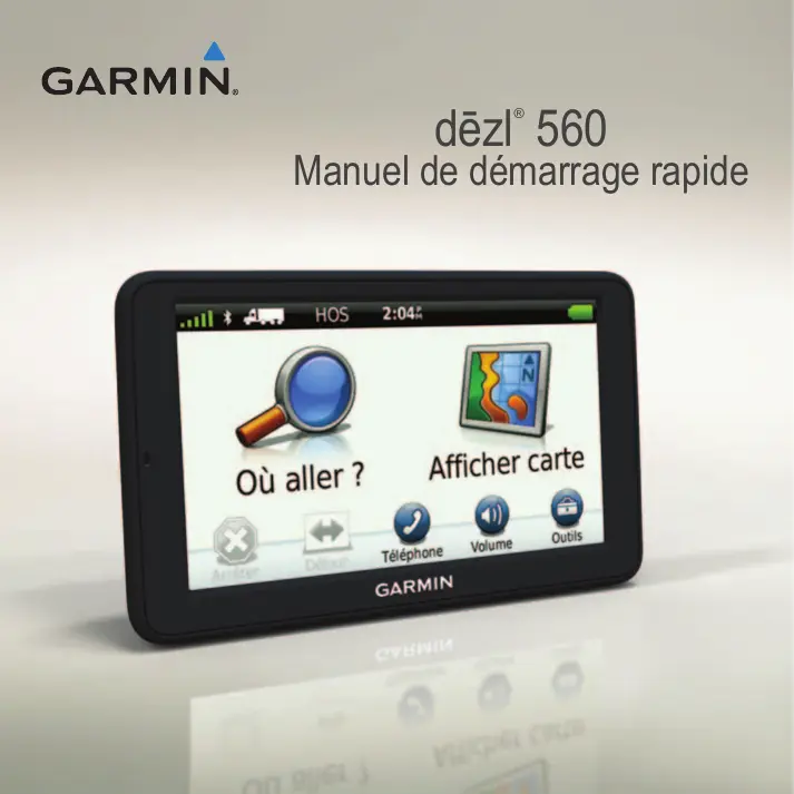 l'écran. Manuel de démarrage rapide du dēzl 560 Téléchargement du manuel d'utilisation Le manuel d'utilisation de votre appareil est disponible sur le site Web de Garmin. Le manuel d'utilisation du dēzl contient plus d'informations sur les fonctions de l’appareil dédiées aux semi-remorques et aux camping-cars.