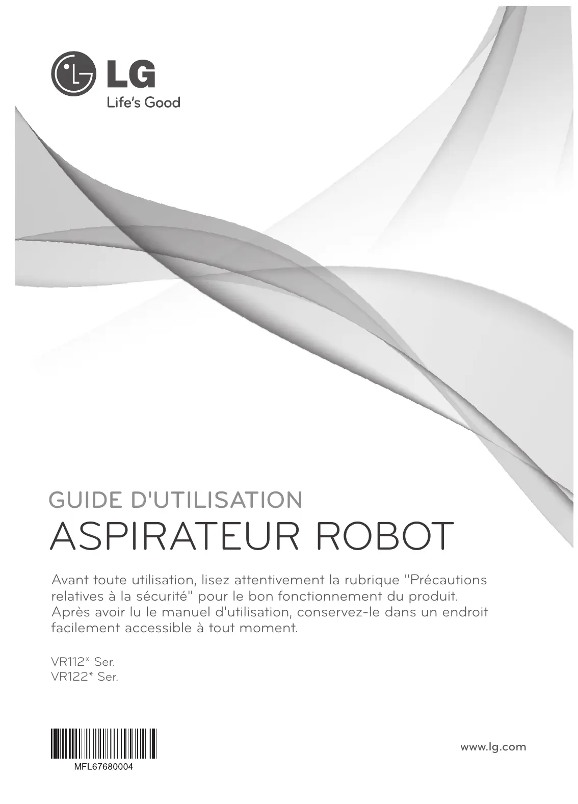 GUIDE D'UTILISATION ASPIRATEUR ROBOT Avant toute utilisation, lisez attentivement la rubrique "Précautions relatives à la sécurité" pour le bon fonctionnement du produit. Après avoir lu le manuel d'utilisation, conservez-le dans un endroit facilement accessible à tout moment. VR112* Ser. VR122* Ser. www.lg.com