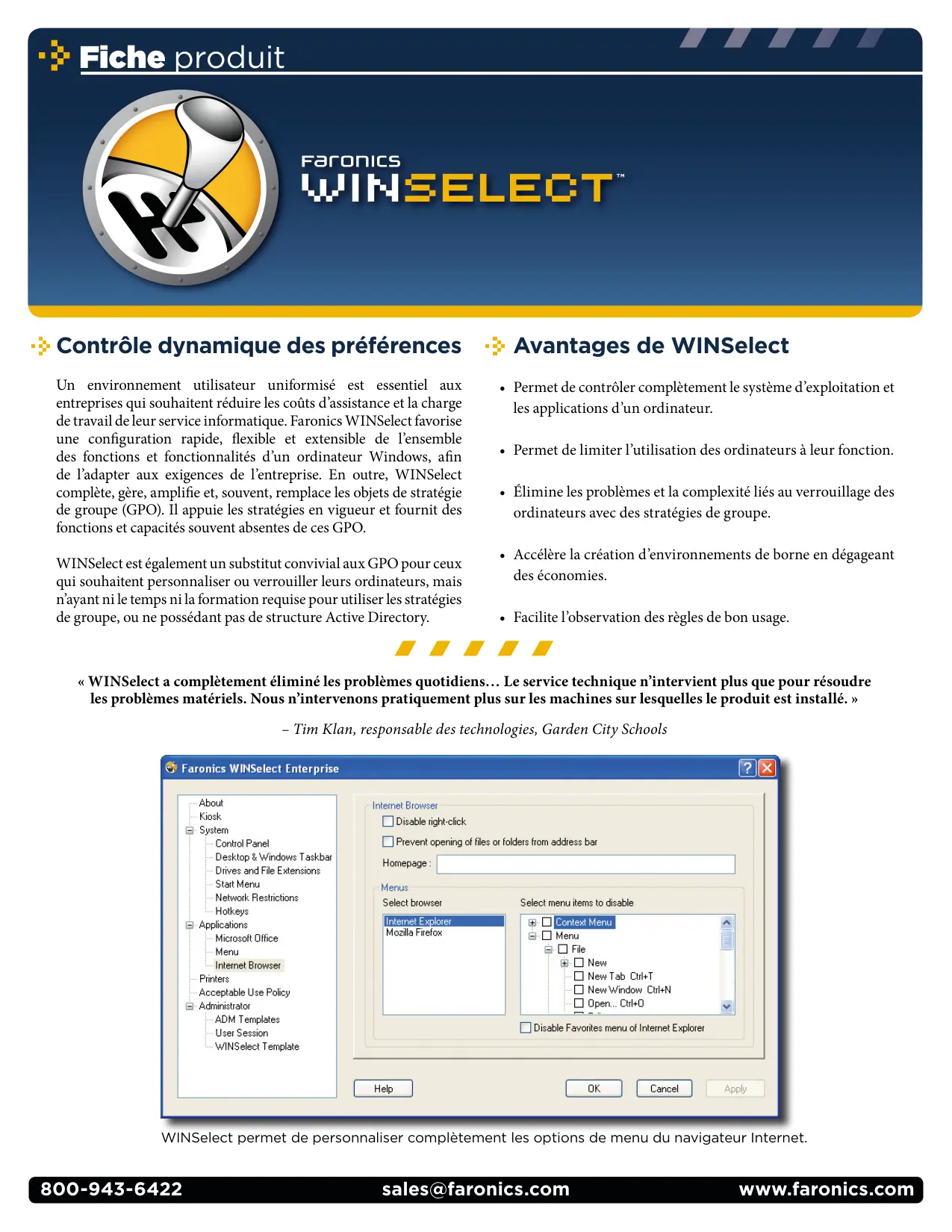 - Déploiement et gestion de WINSelect directement à partir de Faronics Core.