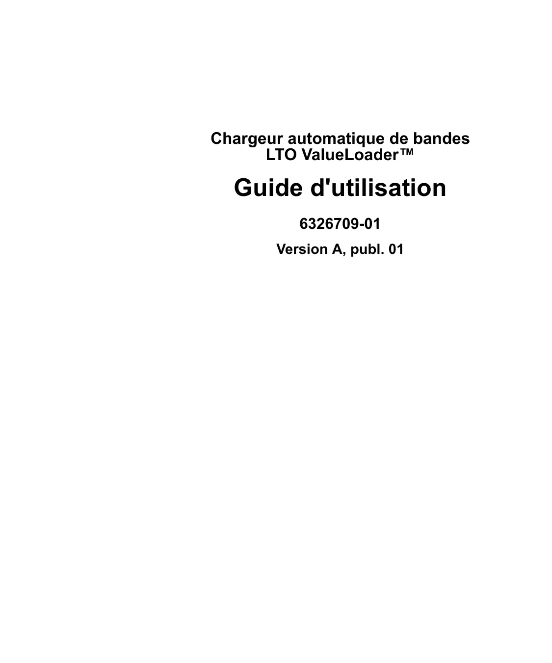 Chargeur automatique de bandes LTO ValueLoader™ Guide d'utilisation 6326709-01 Version A, publ. 01 Guide d'utilisation du chargeur automatique de bandes LTO ValueLoader, 6326709-01, version A, publ. 01, juin 2003, fabriqué aux États-Unis. La présente publication est fournie « telle quelle » sans garantie d'aucune sorte, qu'elle soit explicite ou implicite, y compris, mais de manière non limitative, sans garantie de commercialisation ou d'adéquation à un usage particulier. Elle peut être modifiée à tout moment et sans préavis.