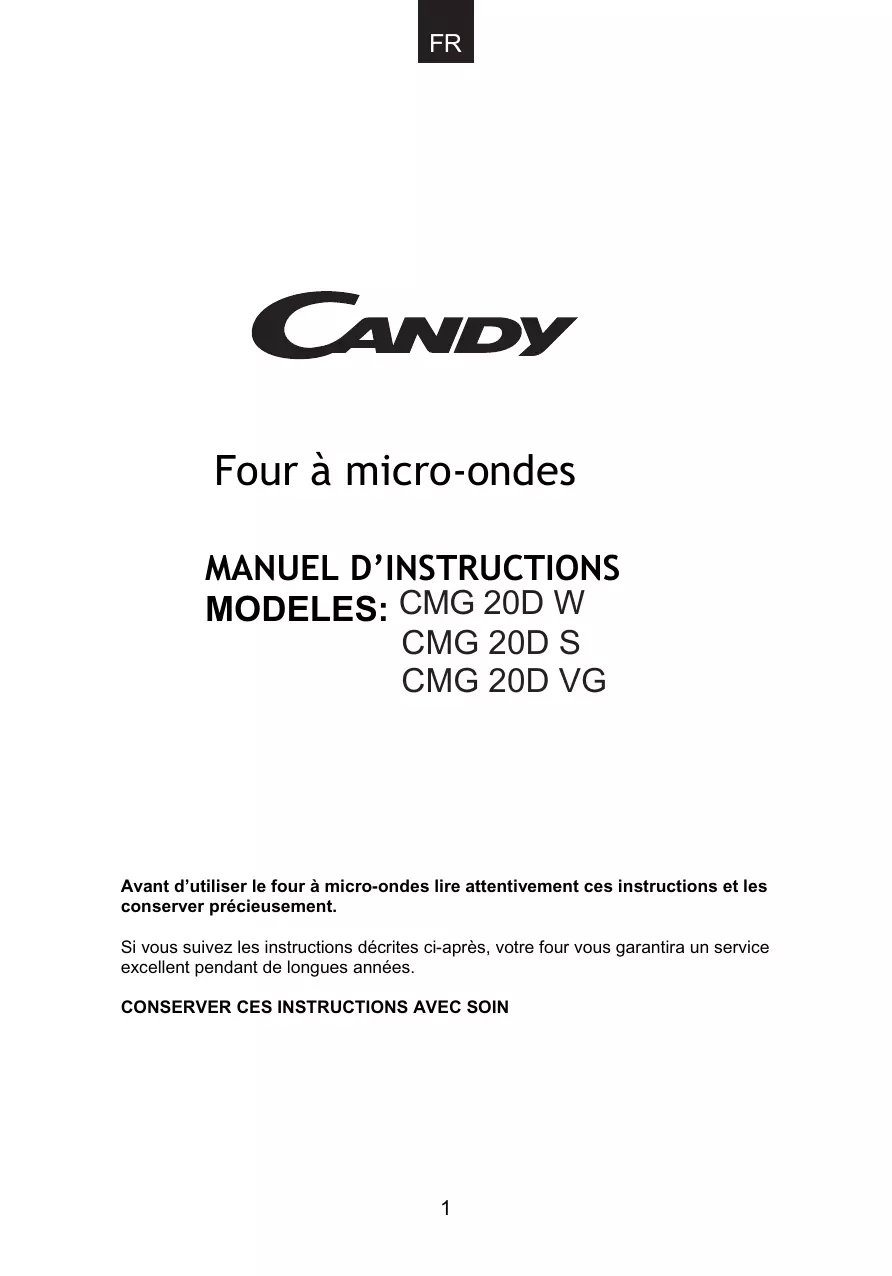 CMG20DS - Micro-ondes CANDY - Notice d'utilisation et mode d'emploi gratuit