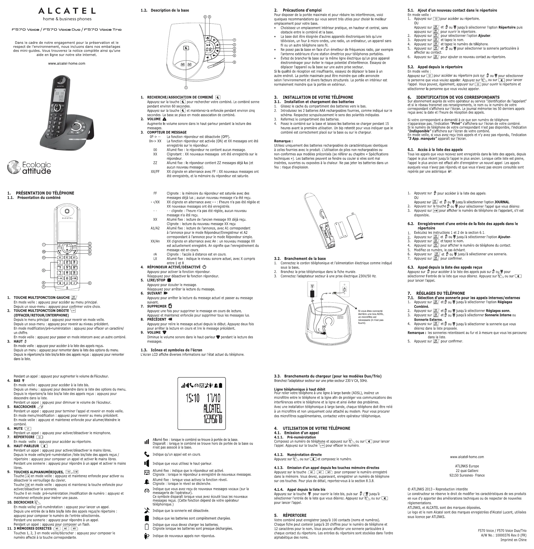 F570 - Téléphone fixe sans fil ALCATEL - Notice d'utilisation et mode d'emploi gratuit