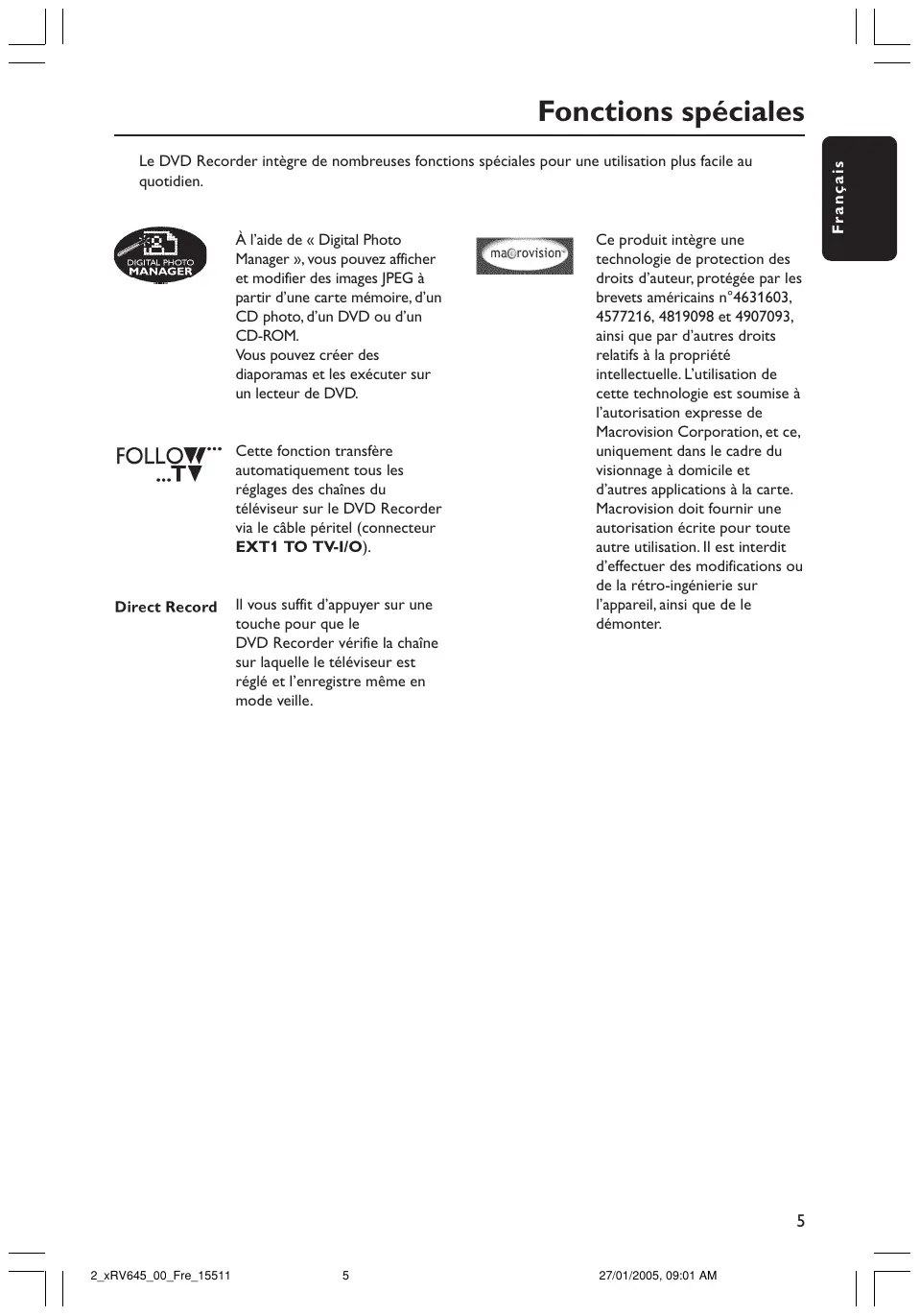 Le DVD Recorder intègre de nombreuses fonctions spéciales pour une utilisation plus facile au quotidien.