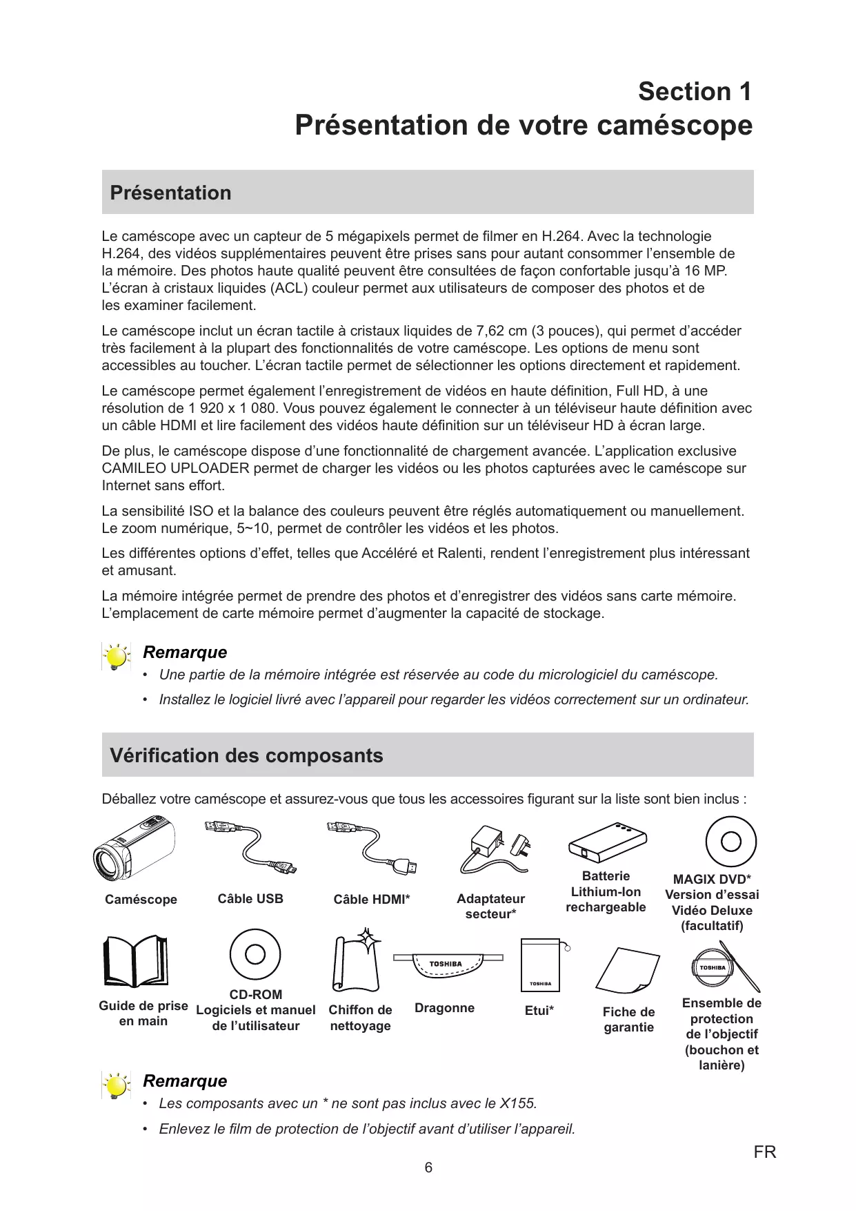 CAMILEO X150 - Caméscope TOSHIBA - Notice d'utilisation et mode d'emploi gratuit