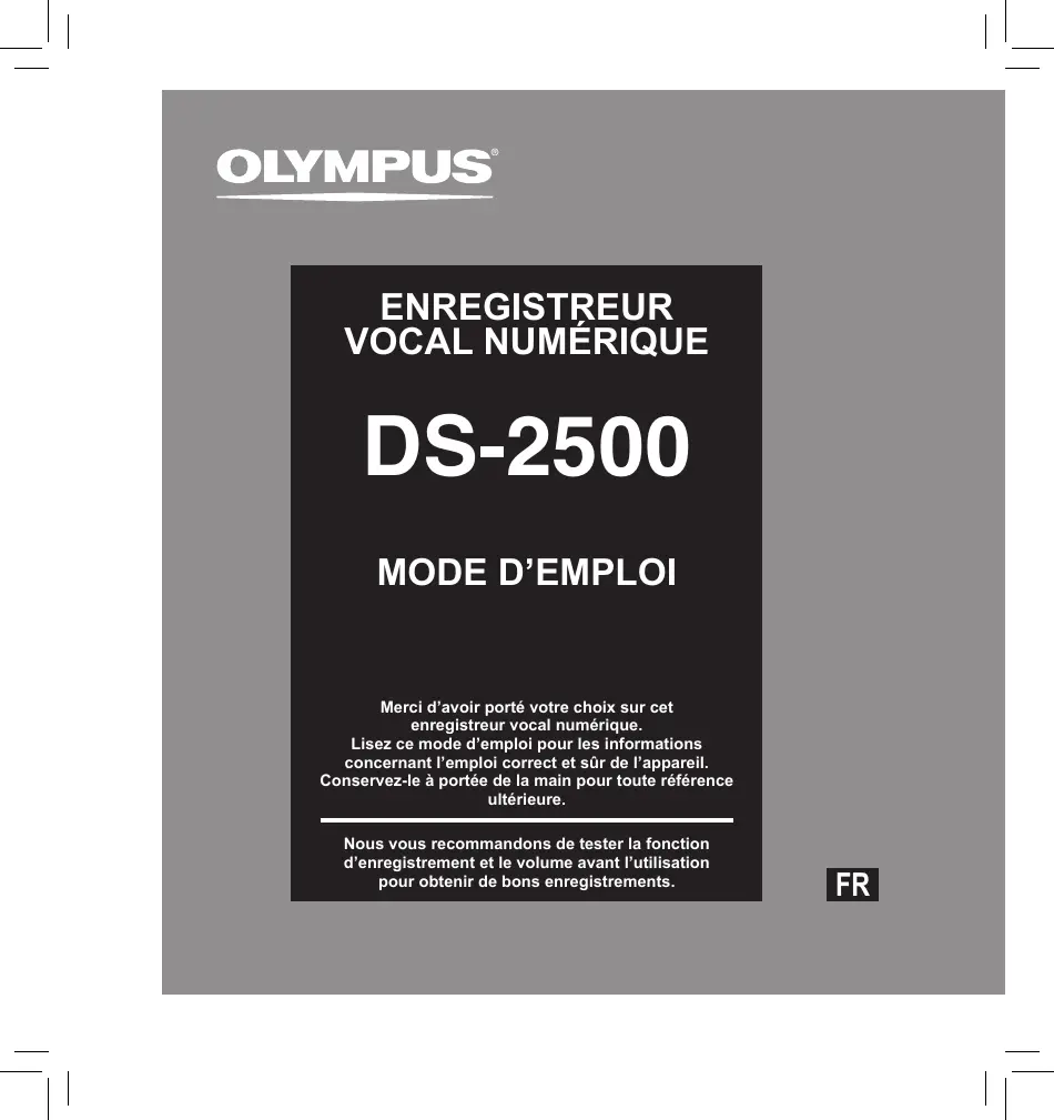 DS 2500 - Dictaphone numérique OLYMPUS - Notice d'utilisation et mode d'emploi gratuit