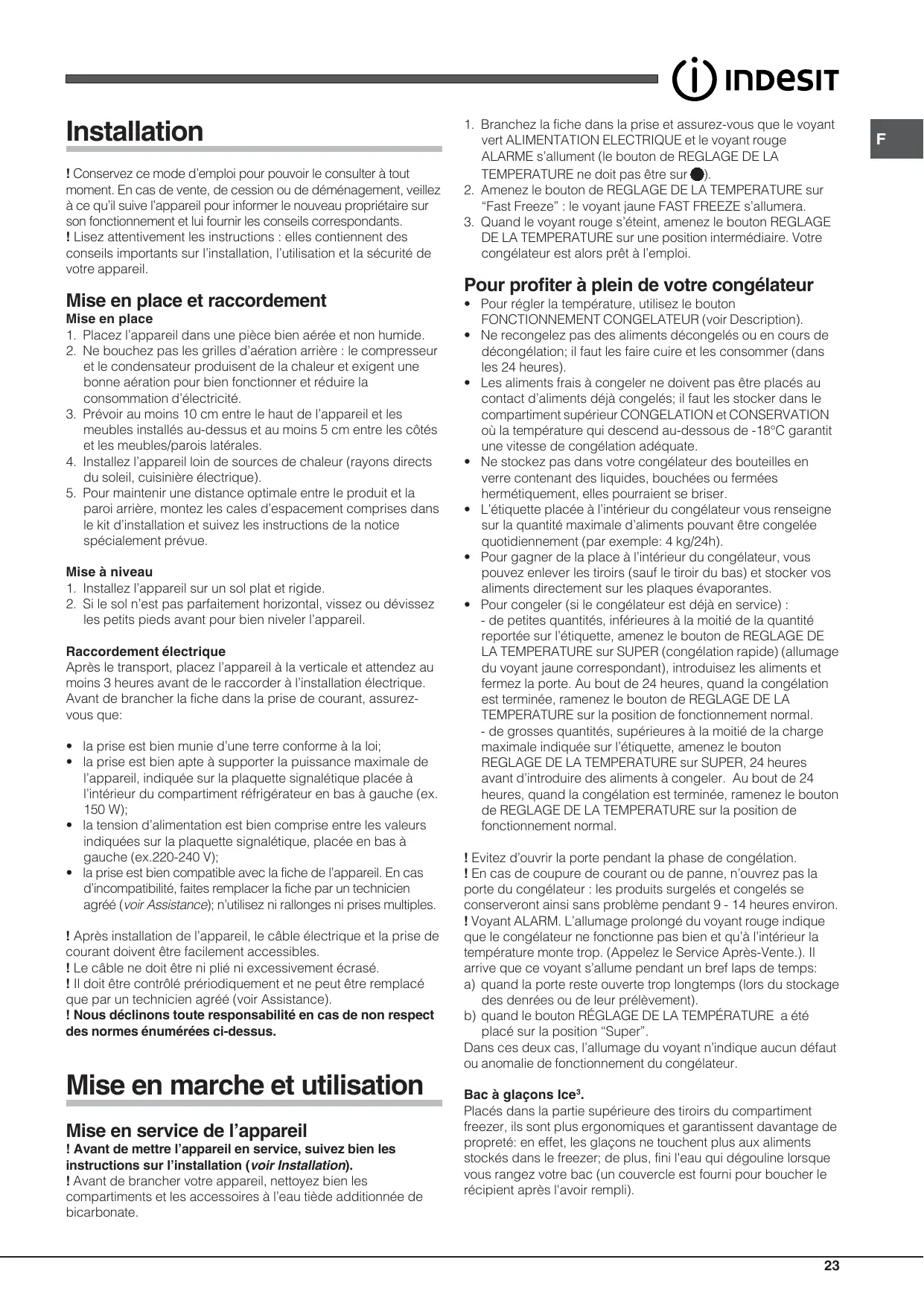UFAN 400S - Congélateur INDESIT - Notice d'utilisation et mode d'emploi gratuit