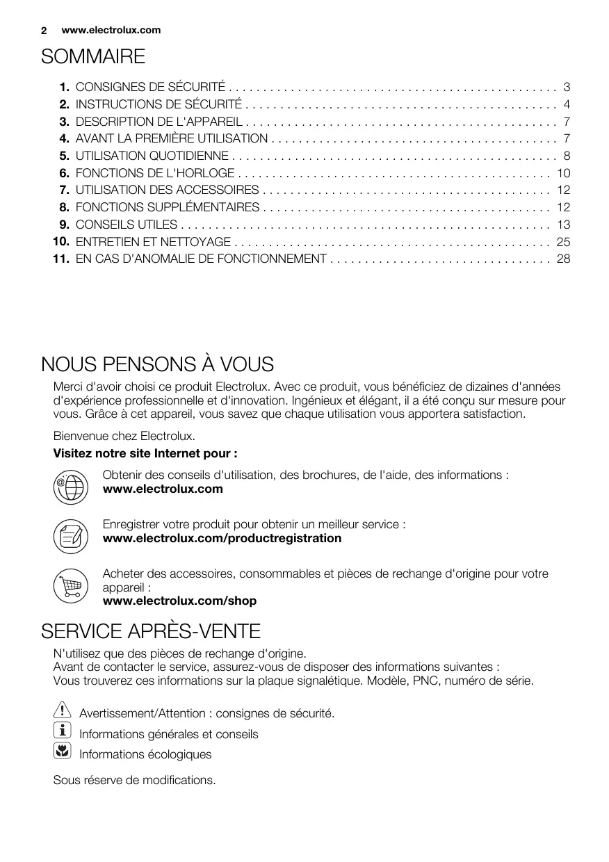 Enregistrer votre produit pour obtenir un meilleur service : www.electrolux.com/productregistration Acheter des accessoires, consommables et pièces de rechange d'origine pour votre appareil : www.electrolux.com/shop
