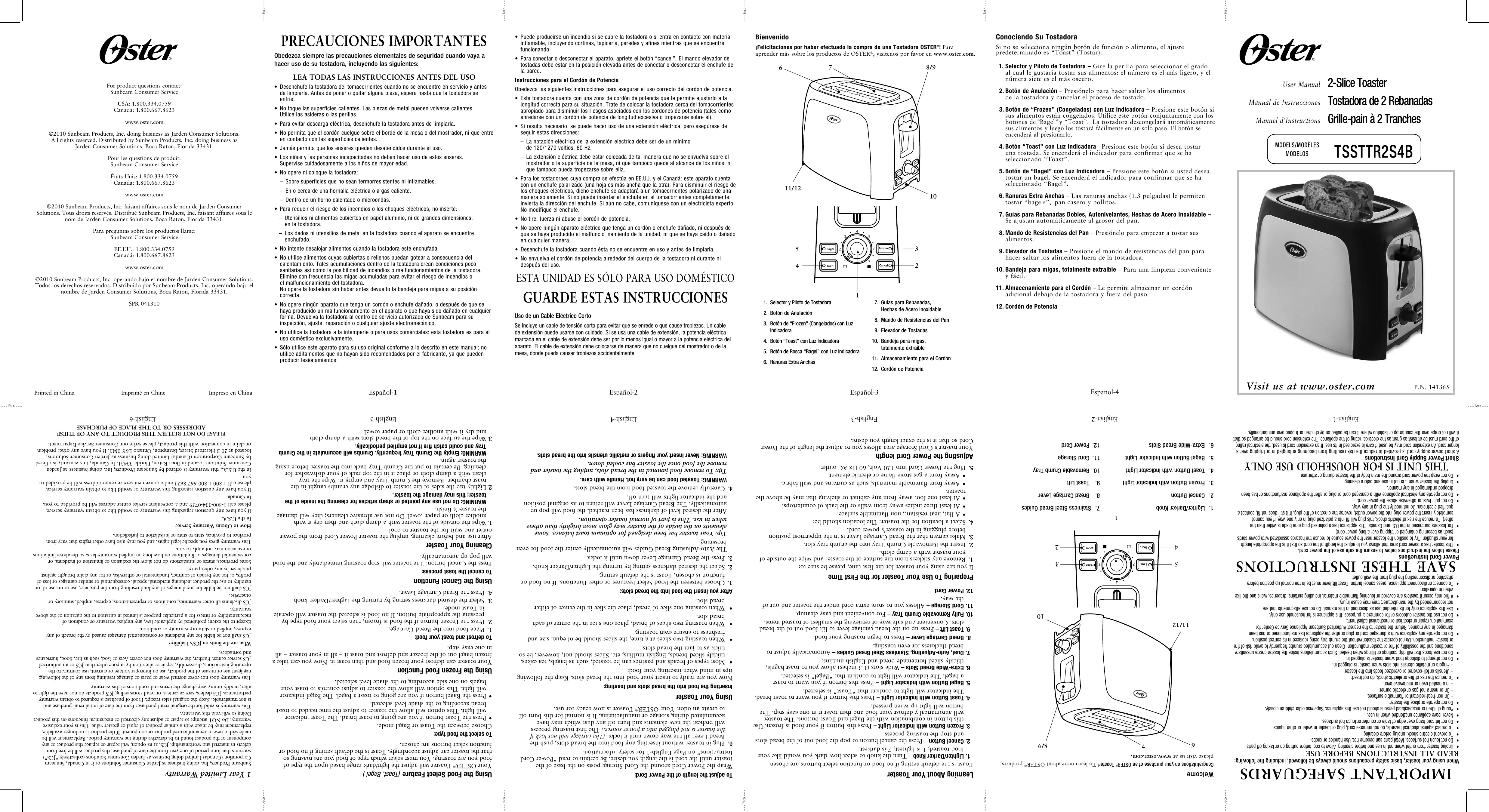 www.oster.com États-Unis: 1.800.334.0759 Canada: 1.800.667.8623 Pour les questions de produit: Sunbeam Consumer Service