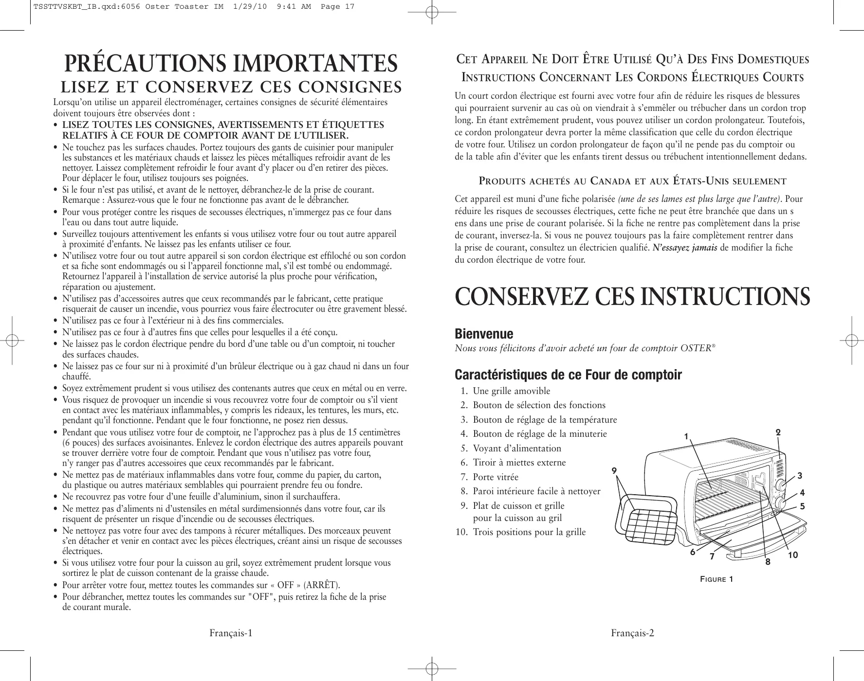 Nous vous félicitons d’avoir acheté un four de comptoir OSTER®