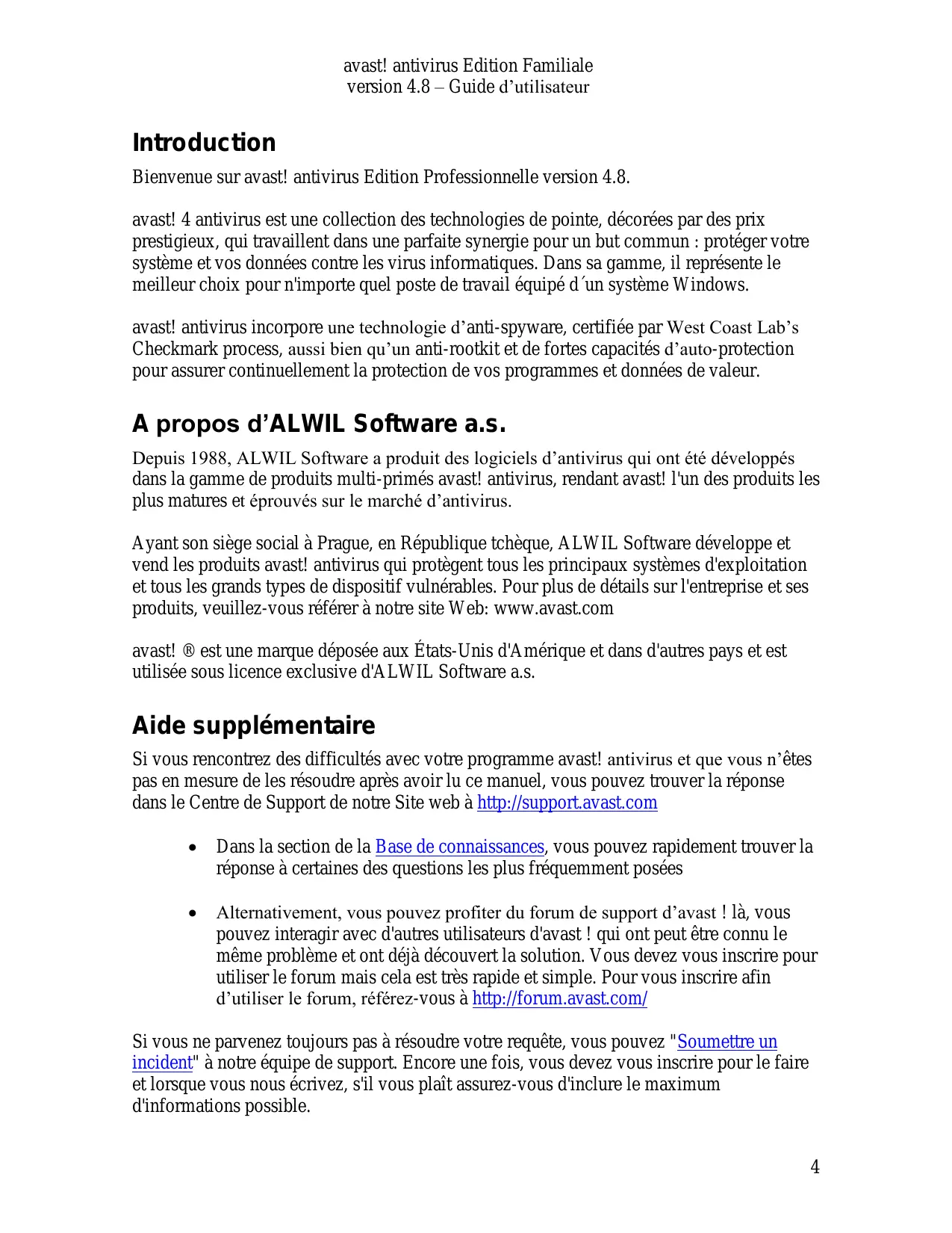 avast! antivirus Edition Familiale version 4.8 – Guide d‟utilisateur AVAST! antivirus Edition Familiale Version 4.8 Guide d’utilisateur