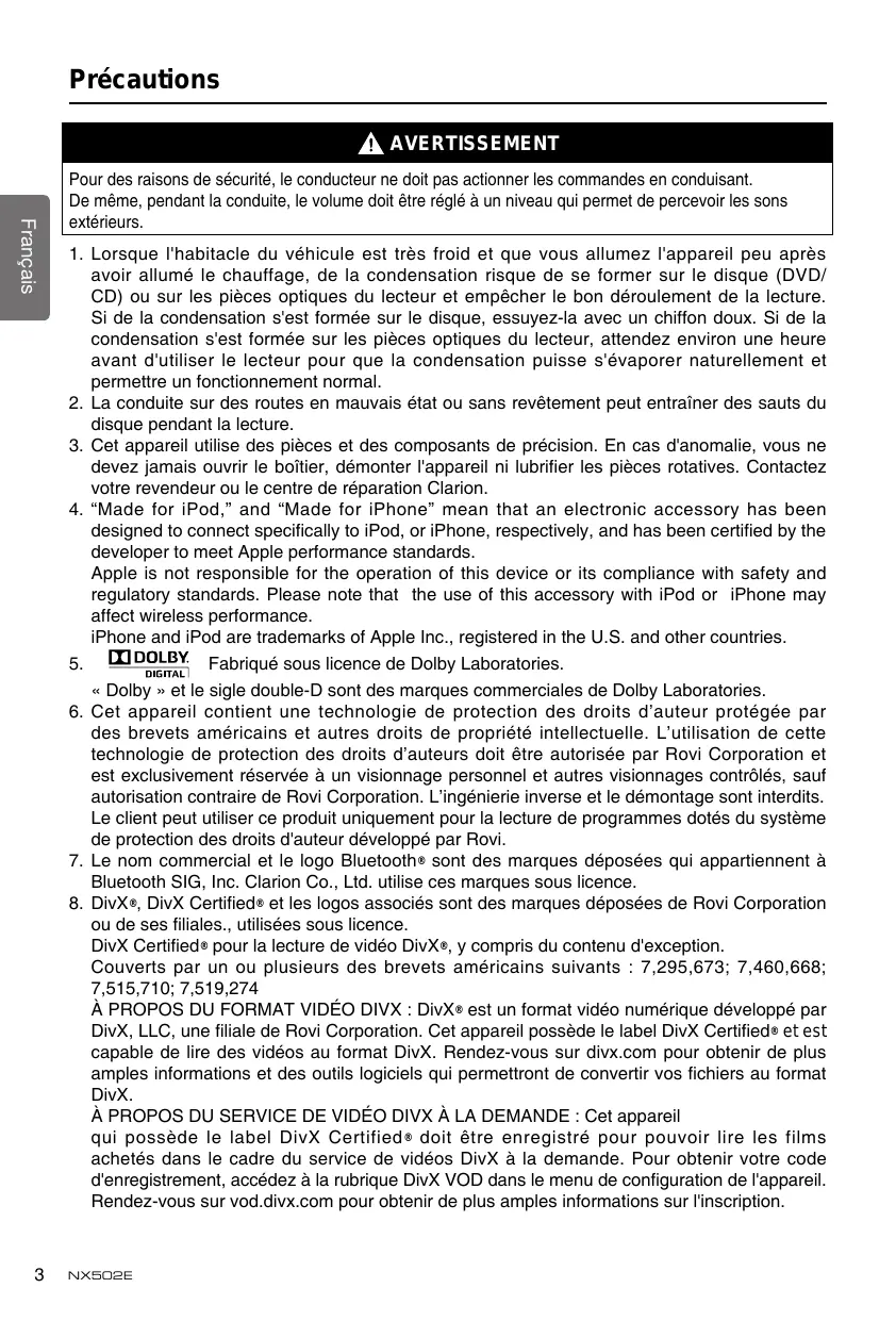 NX502E - Autoradio CLARION - Notice d'utilisation et mode d'emploi gratuit