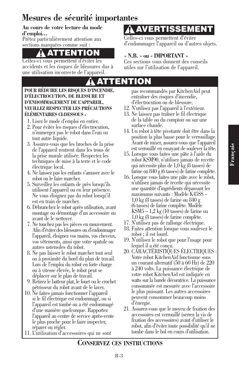 MODE D'EMPLOI 5K45SS EWH CLASSIC KITCHENAID
