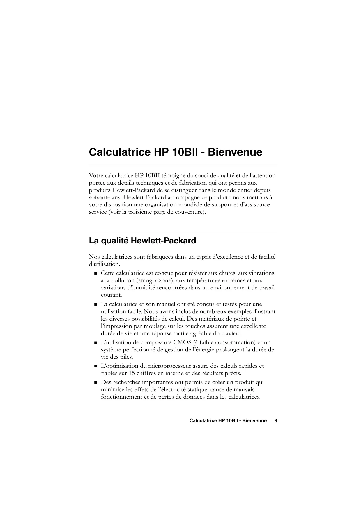 Calculatrice HP 10BII - Bienvenue La qualité Hewlett-Packard Caractéristiques