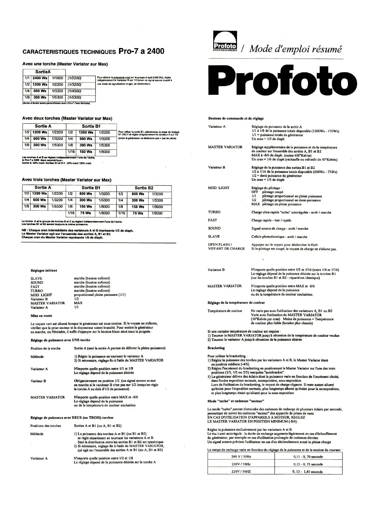 MODE D'EMPLOI PRO-7 A 2400 PROFOTO