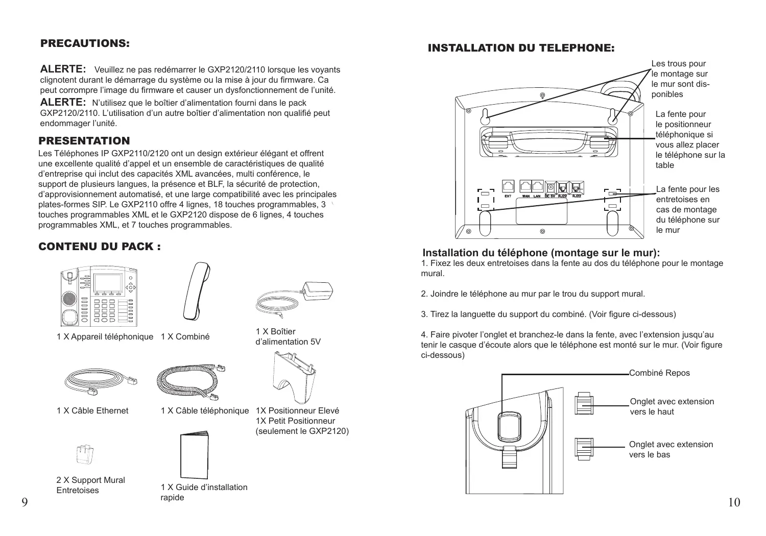 Pour installer le GXP2120/2110, suivez les instructions ci-dessous :