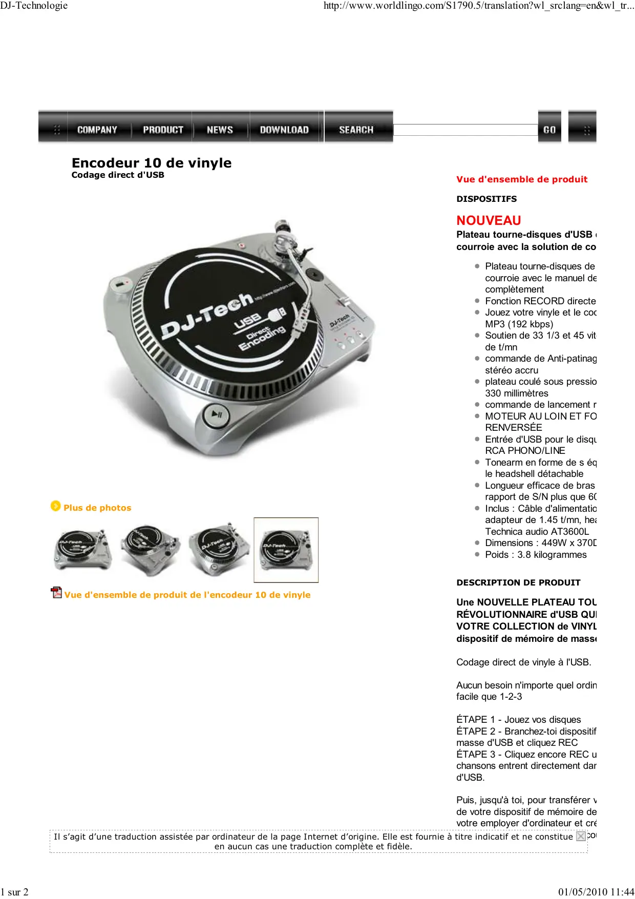 Vue d'ensemble de produit de l'encodeur 10 de vinyle