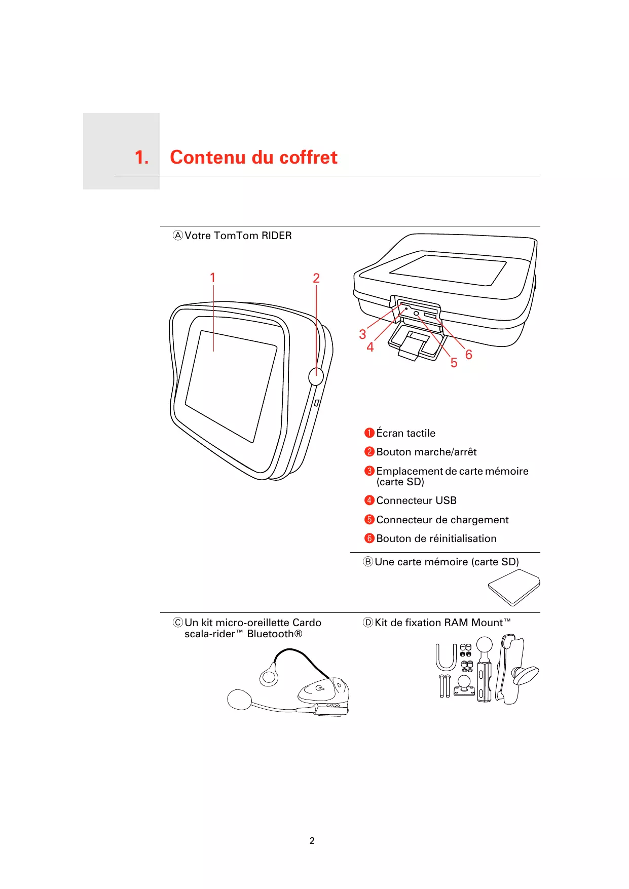 Contenu du coffret Contenu du coffret A Votre TomTom RIDER