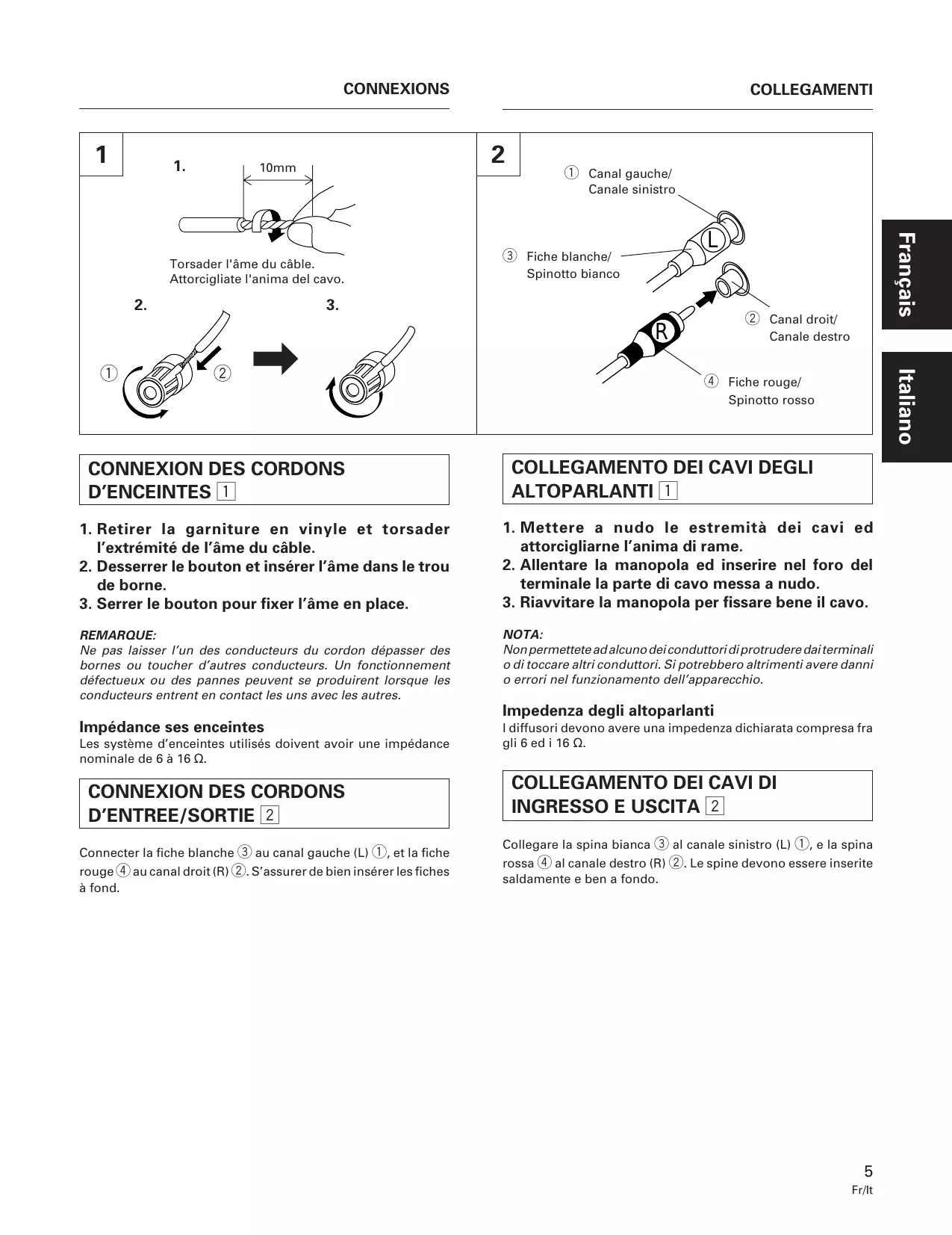 CONNEXIONS COLLEGAMENTI Avant d'effectuer ou de modifier des raccordements, coupez l'alimentation électrique.