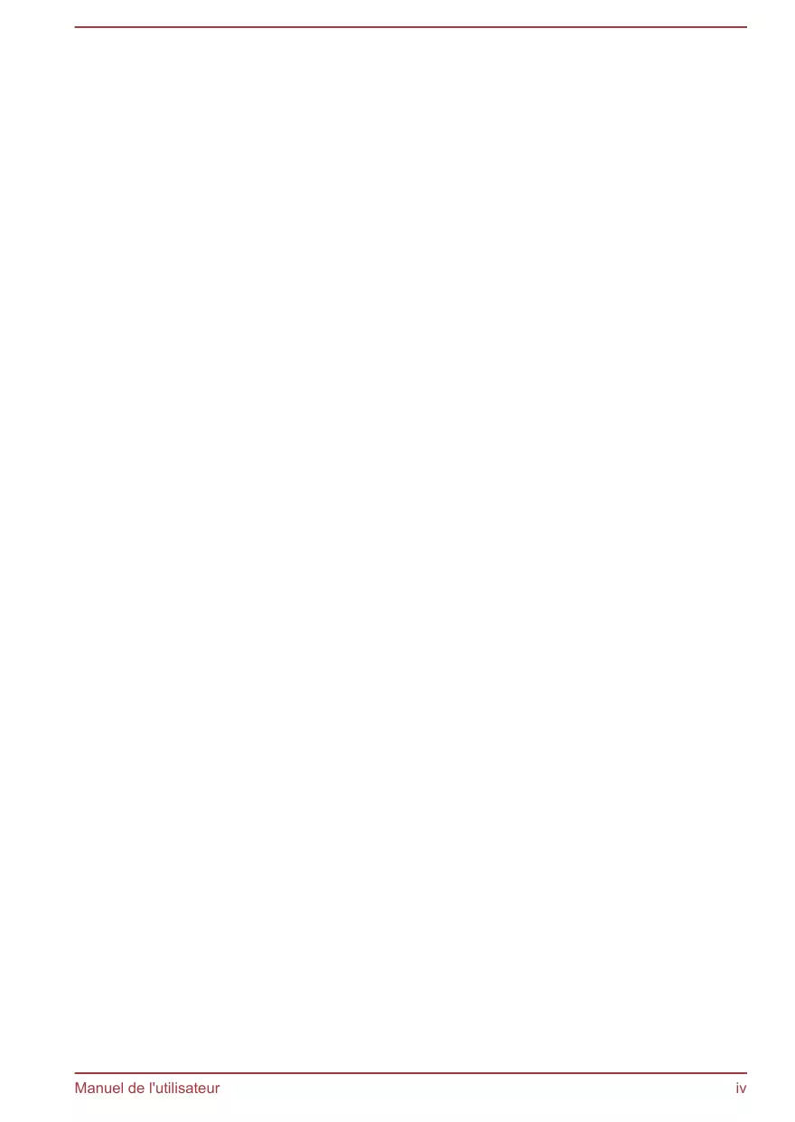 Dépannage Procédure de résolution des problèmes ............................................. 6-1 Liste de contrôle du matériel et du système ...................................... 6-4 Assistance TOSHIBA .......................................................................... 6-17 Index Manuel de l'utilisateur iii Manuel de l'utilisateur