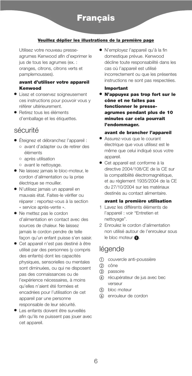 JE450 - Extracteur de jus KENWOOD - Notice d'utilisation et mode d'emploi gratuit