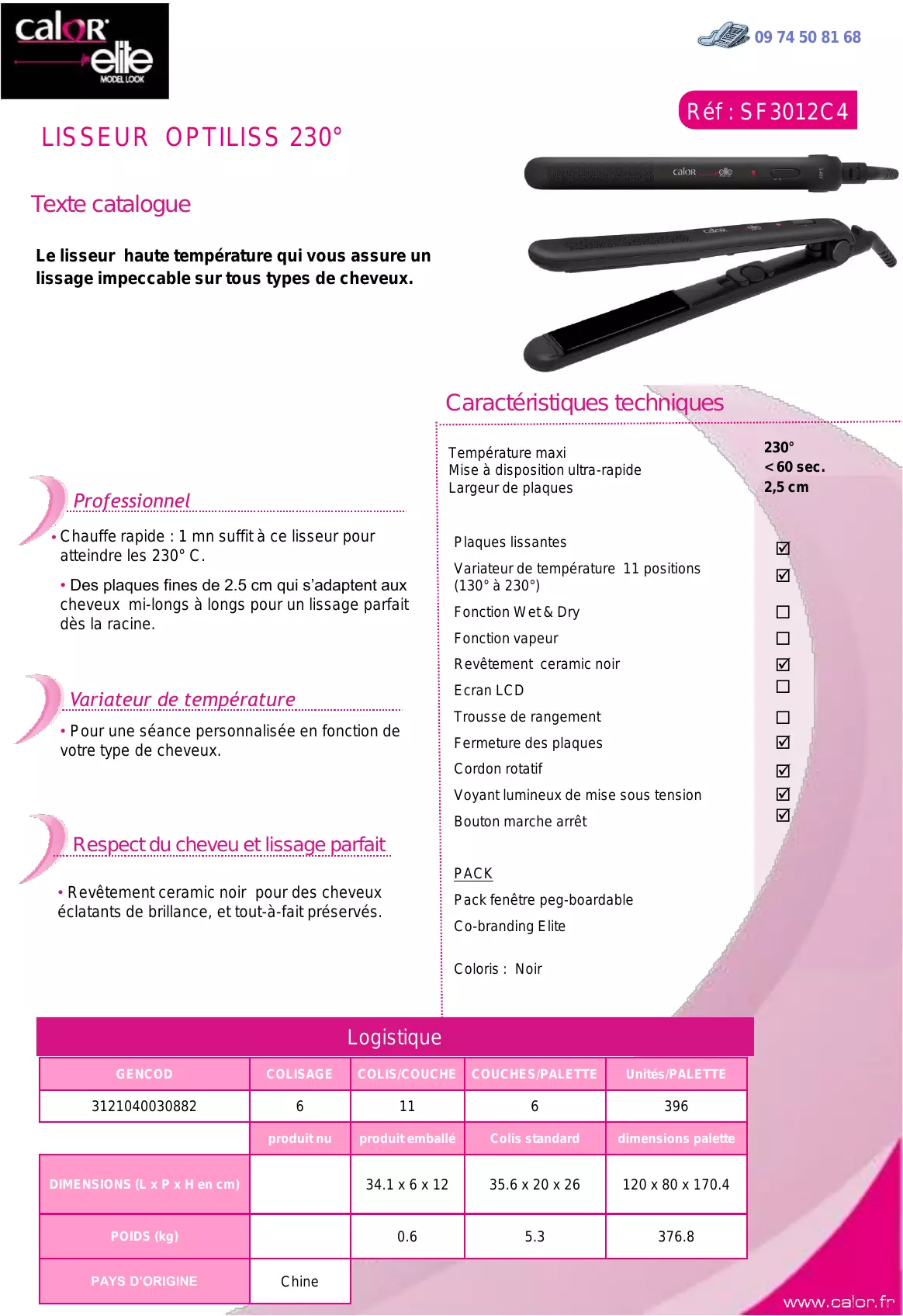 - Des plaques fines de 2.5 cm qui s'adaptent aux cheveux mi-longs à longs pour un lissage parfait dés la racine.
