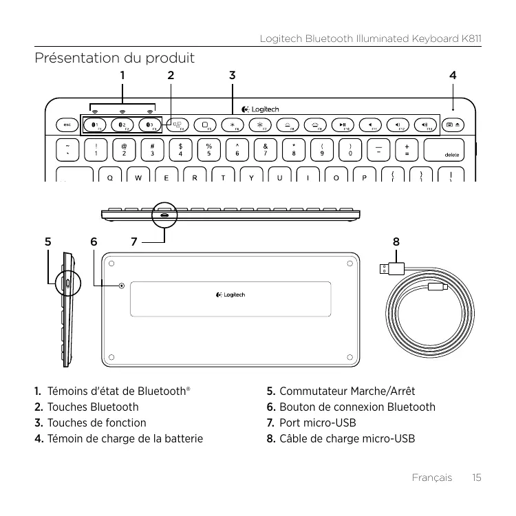 | Type de produit | Clavier Bluetooth rétroéclairé |