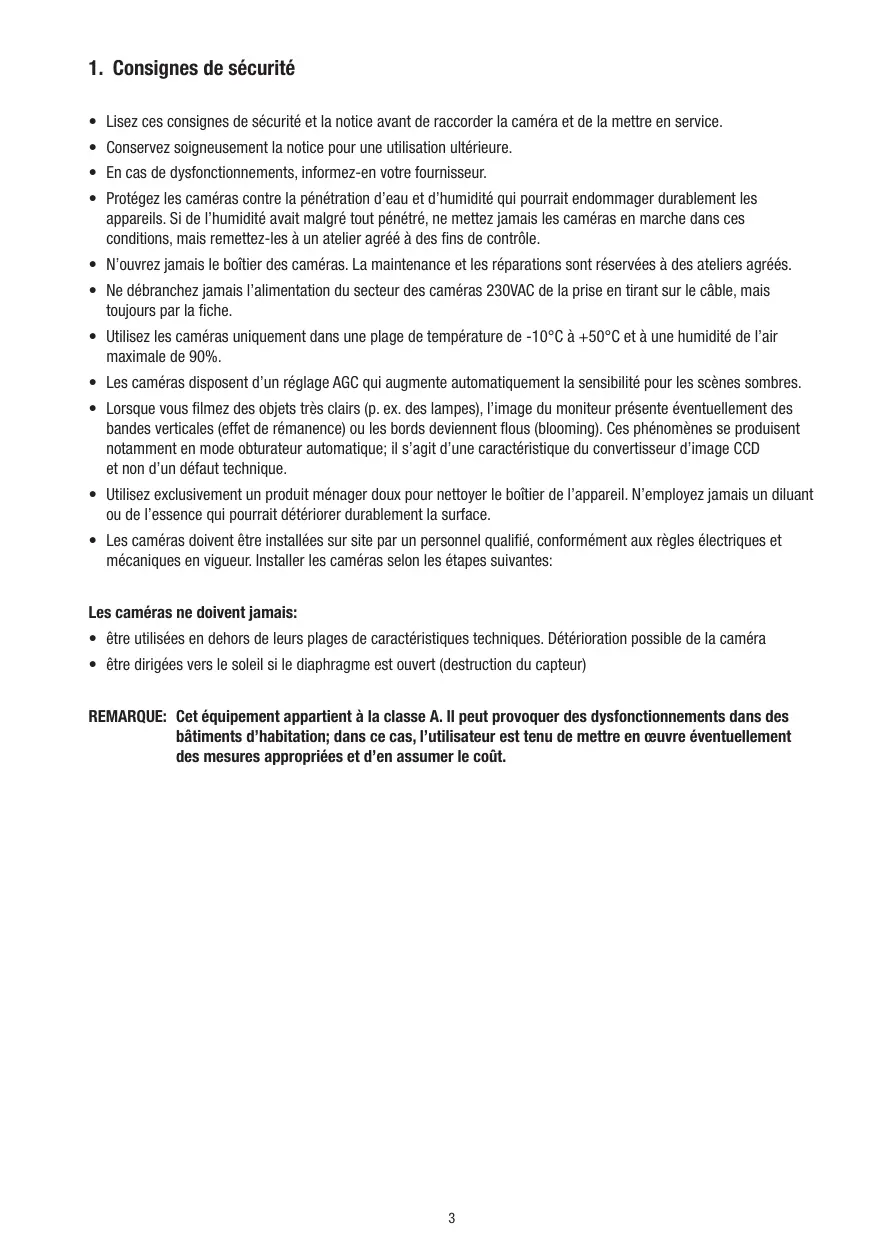 - être dirigées vers le soleil si le diaphragme est ouvert (destruction du capteur) REMARQUE: Cet équipement appartient à la classe A. Il peut provoquer des dysfonctionnements dans des bâtiments d’habitation; dans ce cas, l’utilisateur est tenu de mettre en œuvre éventuellement des mesures appropriées et d’en assumer le coût.