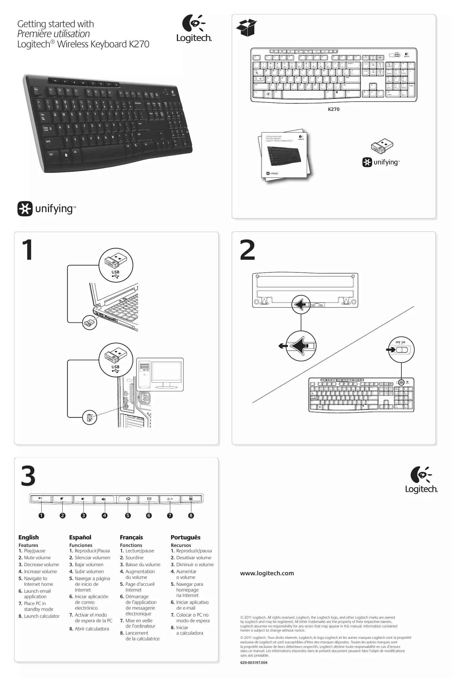 Téléchargez la notice de votre Clavier sans fil au format PDF gratuitement ! Retrouvez votre notice WIRELESS KEYBOARD K270 - LOGITECH et reprennez votre appareil électronique en main. Sur cette page sont publiés tous les documents nécessaires à l'utilisation de votre appareil WIRELESS KEYBOARD K270 de la marque LOGITECH.