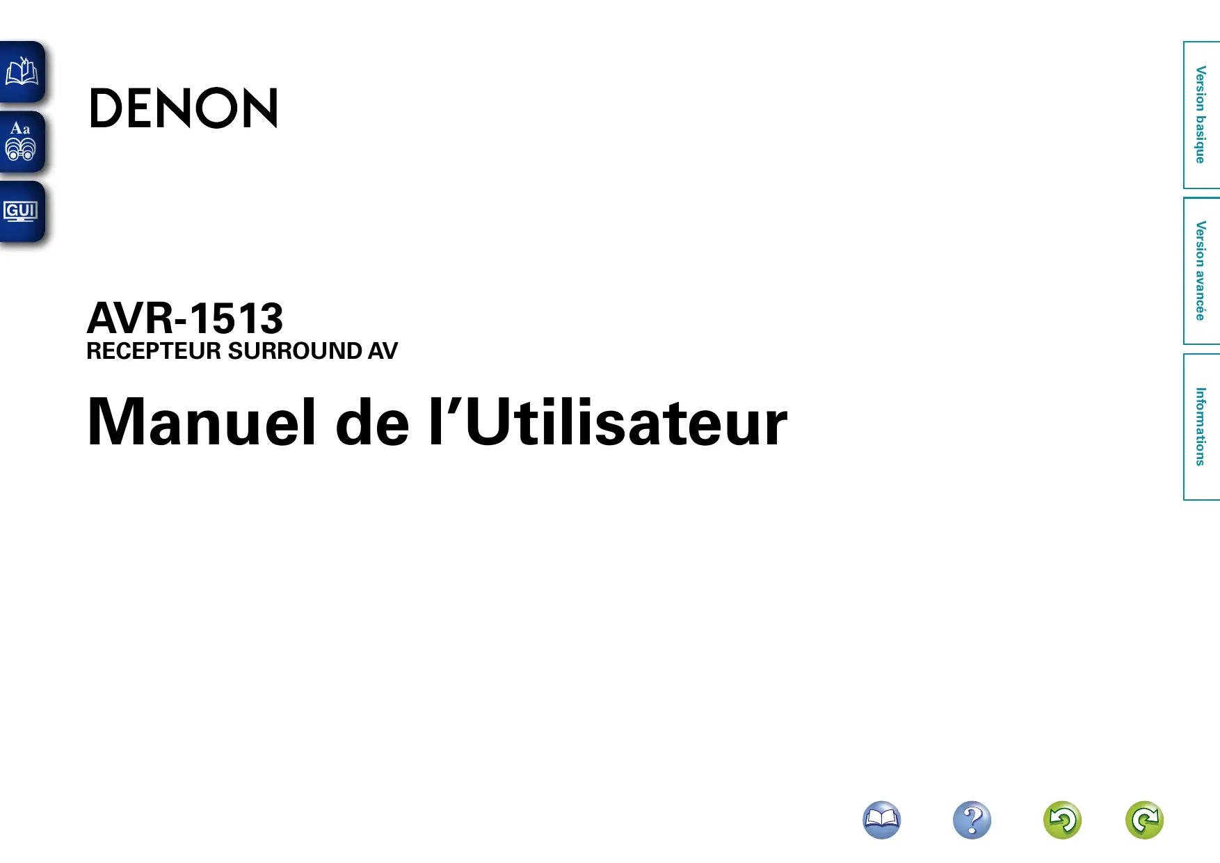 Téléchargez la notice de votre Récepteur audio-vidéo au format PDF gratuitement ! Retrouvez votre notice AVR-1513BK - DENON et reprennez votre appareil électronique en main. Sur cette page sont publiés tous les documents nécessaires à l'utilisation de votre appareil AVR-1513BK de la marque DENON.