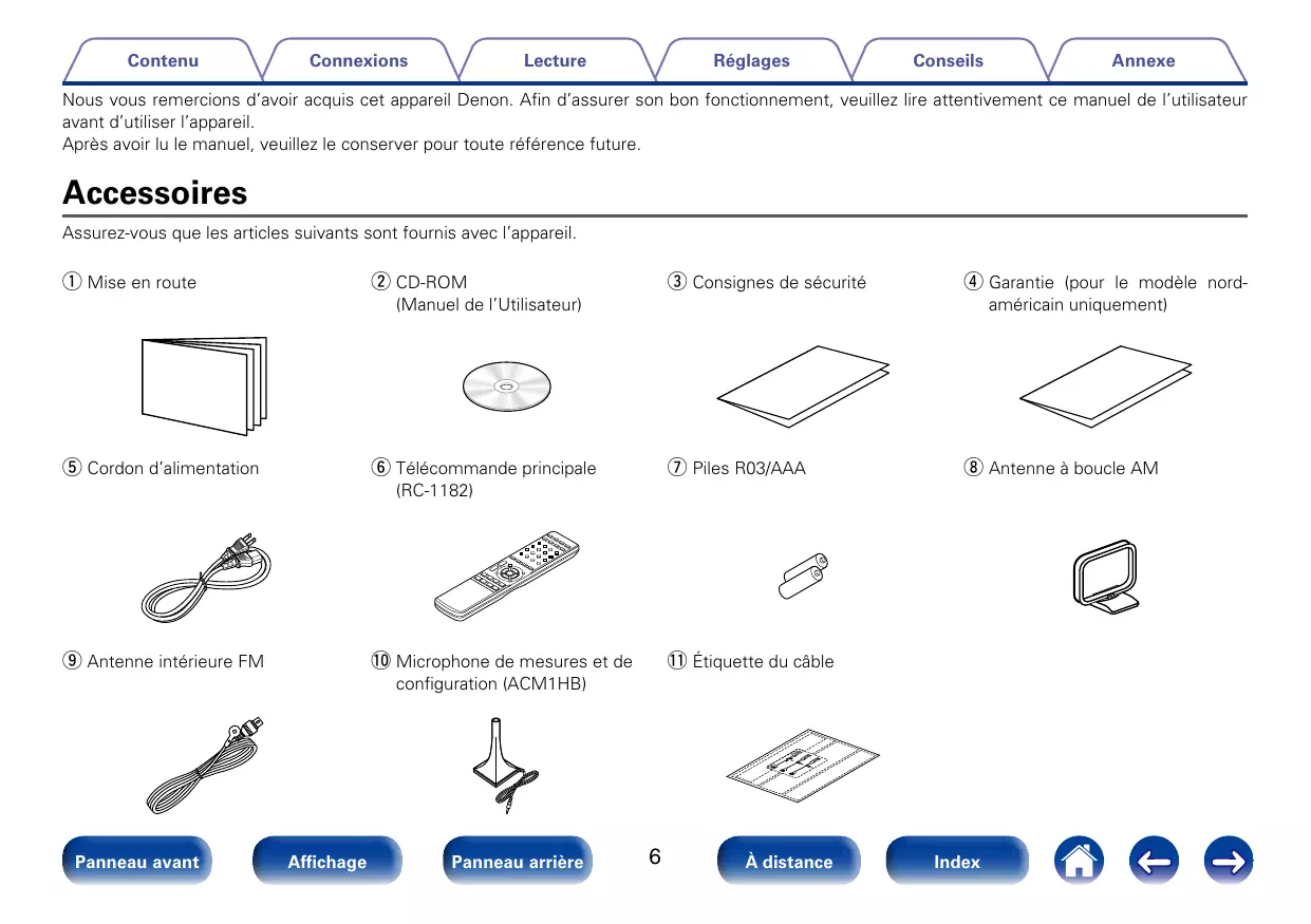 | Pièces détachées et réparabilité | Disponibilité des pièces de rechange à vérifier auprès du service client Denon |
