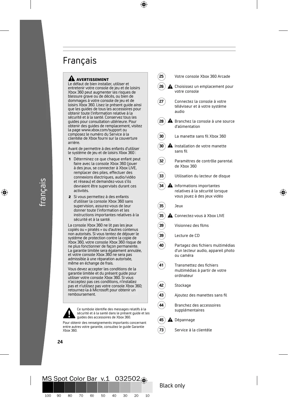 Pour obtenir des renseignements importants concernant entre autres votre garantie, consultez le guide Garantie Xbox 360.