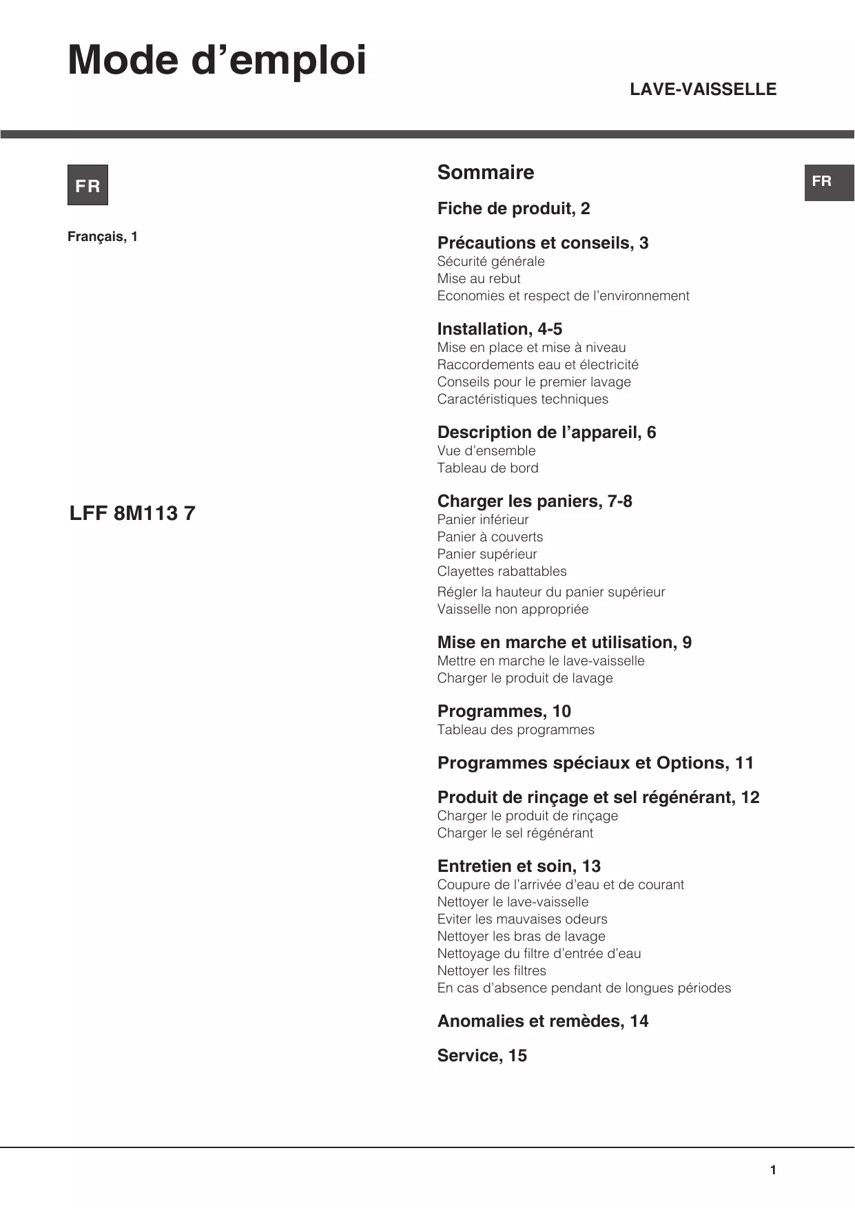 LFF8M1137XEU - Lave-vaisselle HOTPOINT-ARISTON - Notice d'utilisation et mode d'emploi gratuit