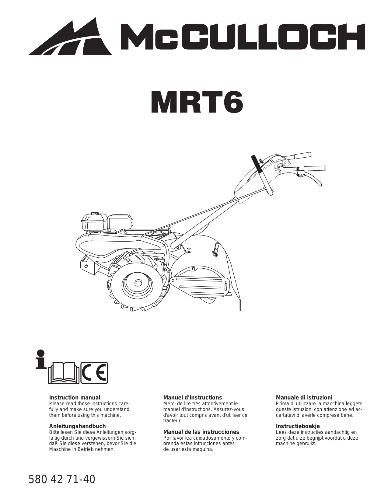 ROTOVATOR MRT6 - Outillage de jardin MC CULLOCH - Notice d'utilisation et mode d'emploi gratuit